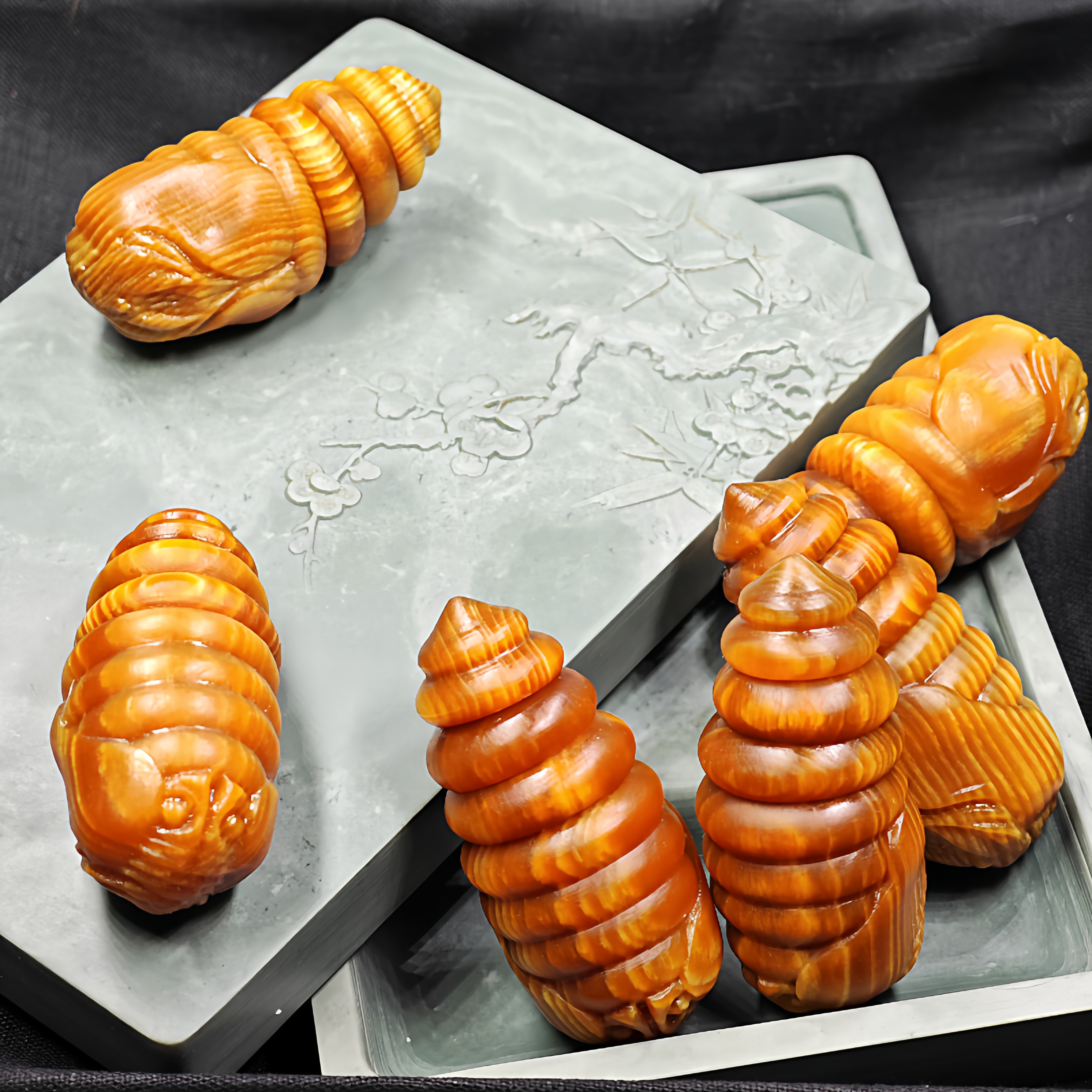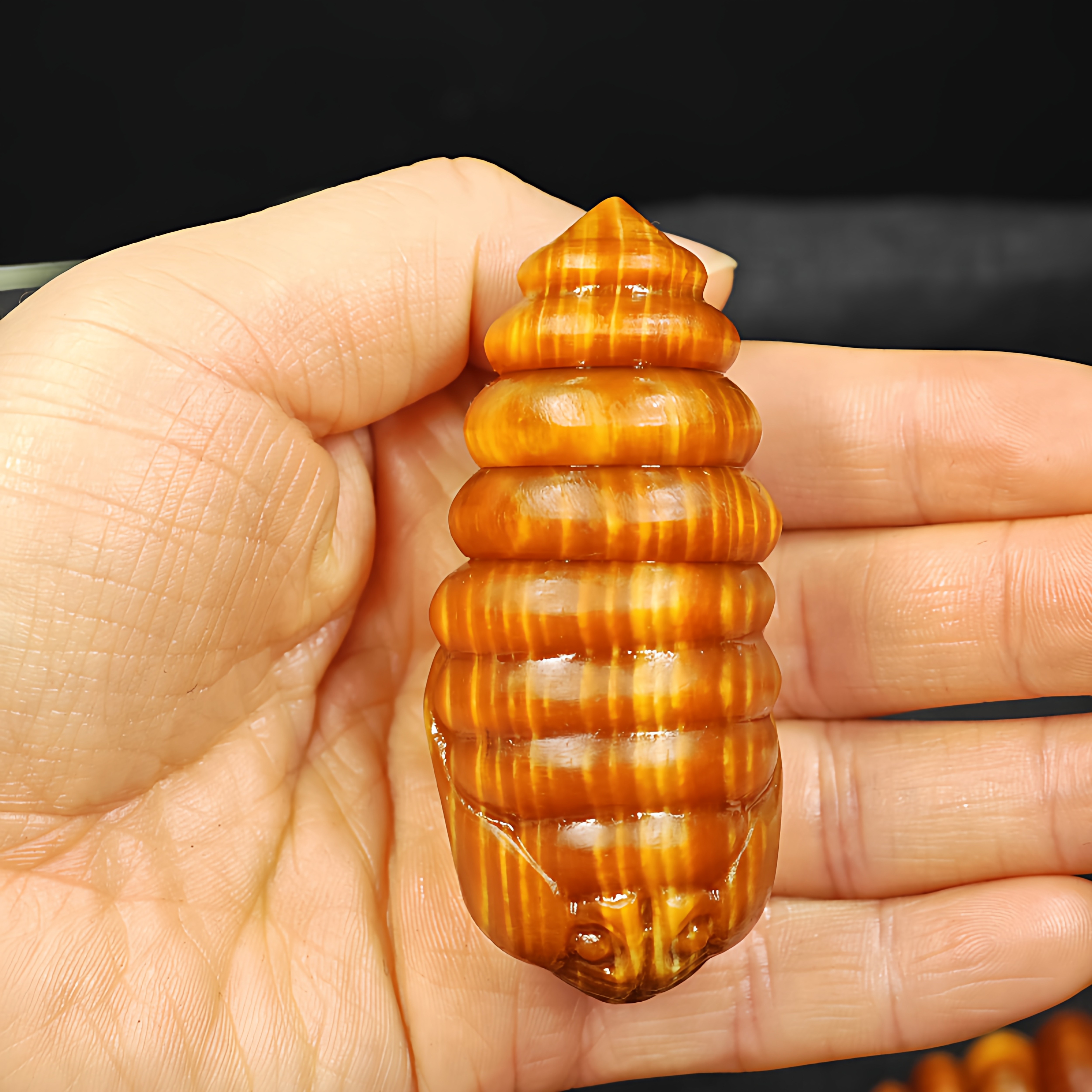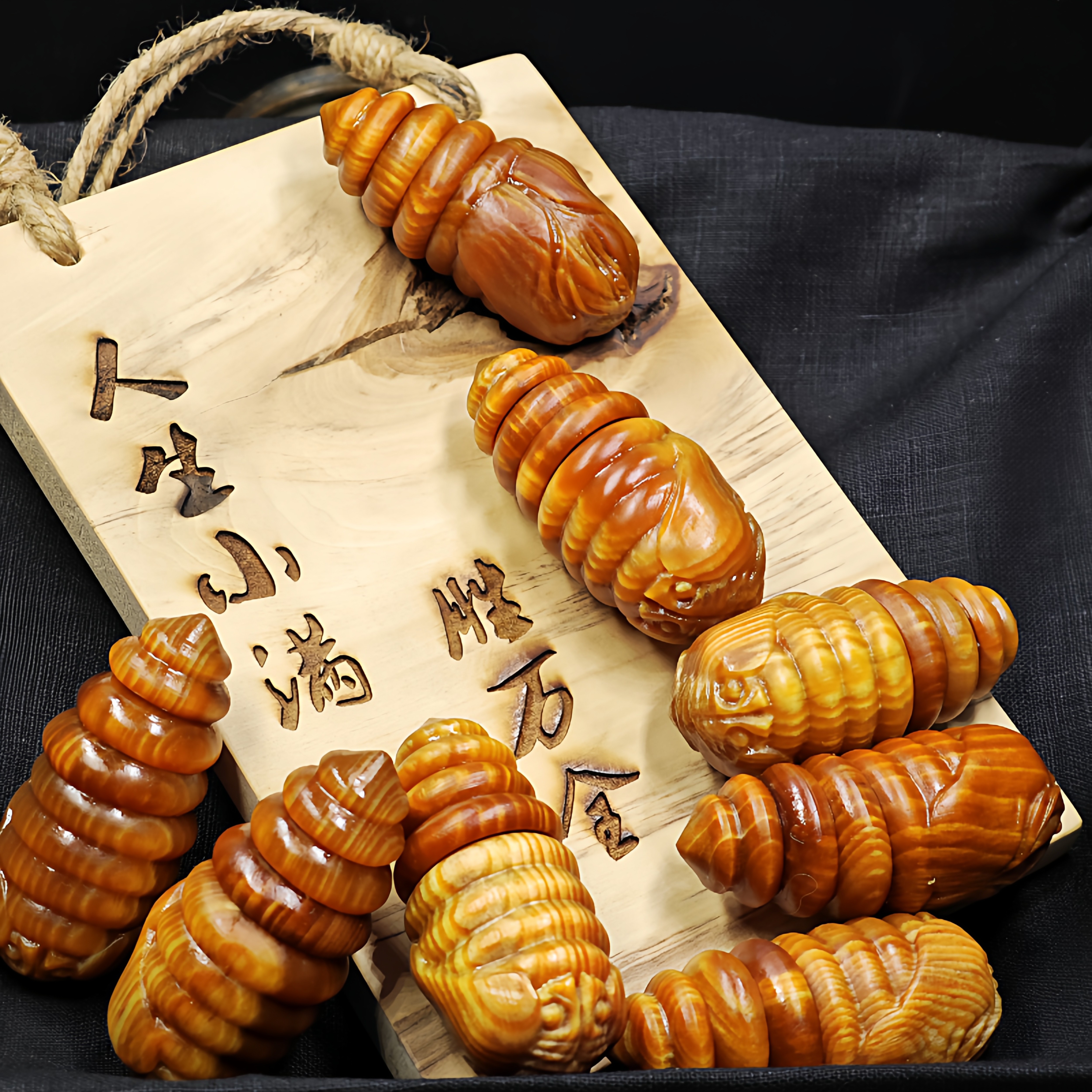 📚 长白山松明子琥珀木蚕蛹手把件盘东南西北可转动解压蝉蛹八方来财