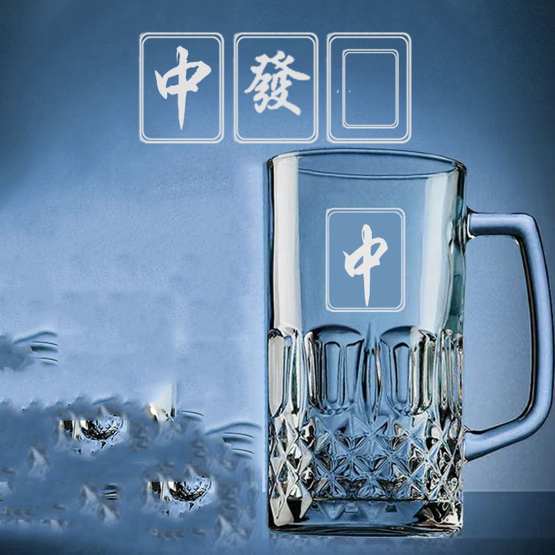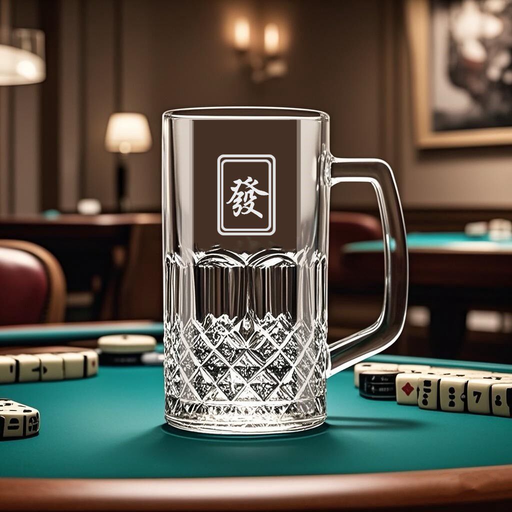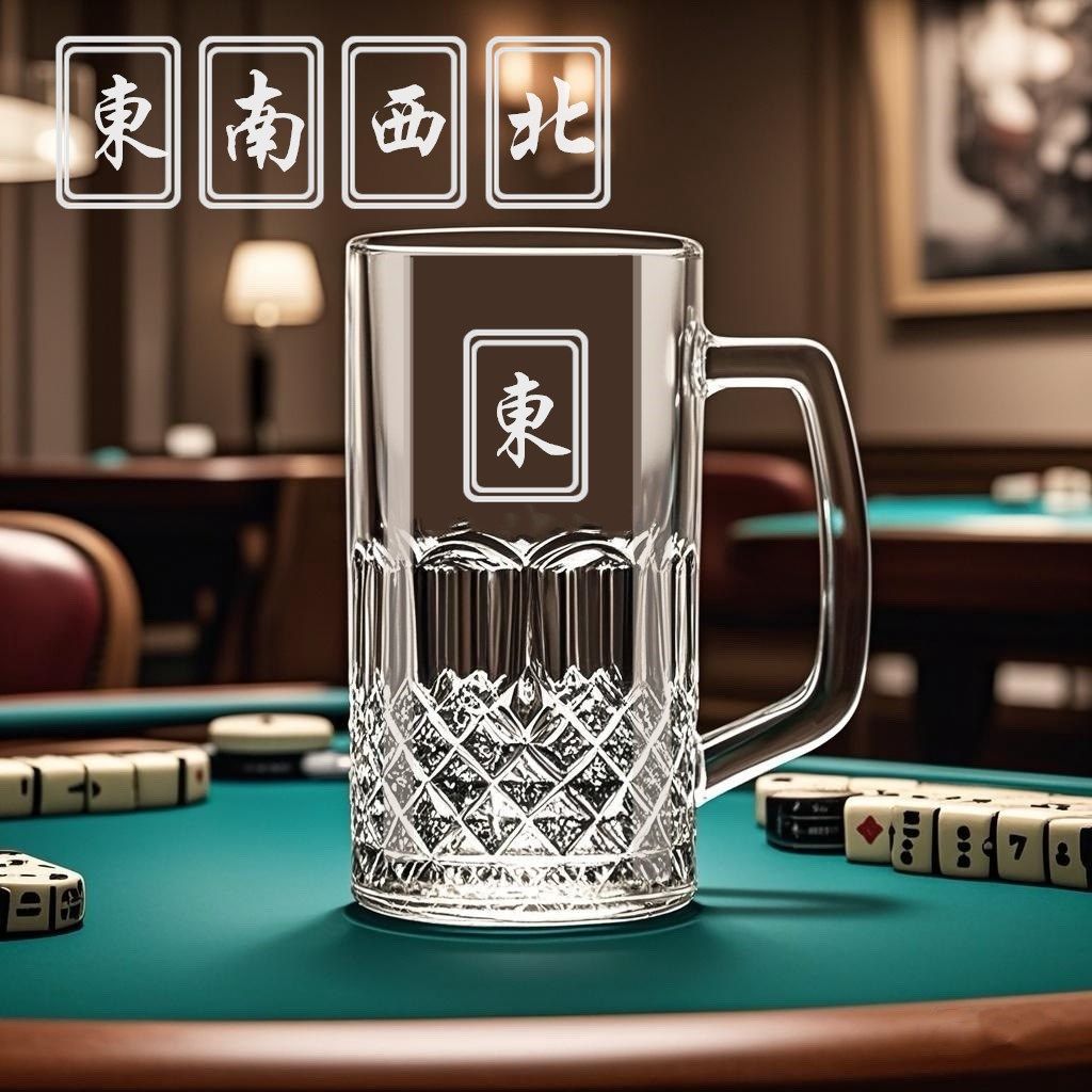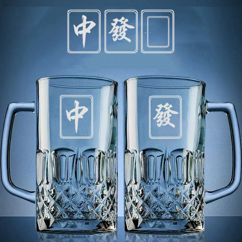 📚 泡茶杯打麻将专用杯馆玻璃啤酒340ml耐热茶馆水杯绿花茶带把杯500