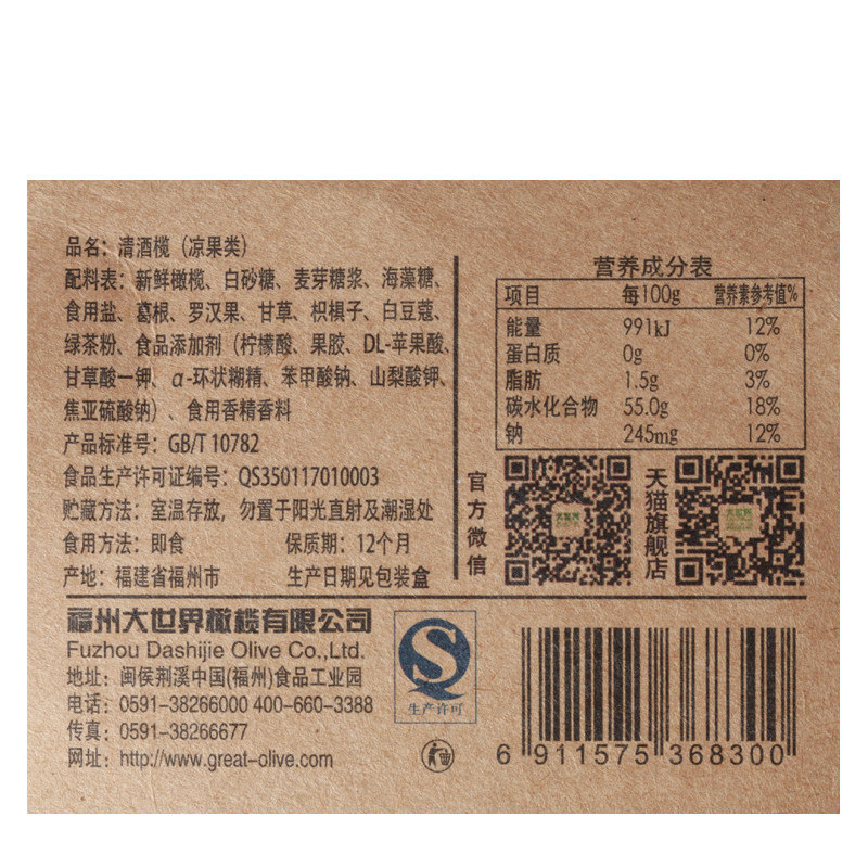 59¥ CZ028 oWH6Ujy3WwX¥ https://m.tb.cn/h.7Gf94uz 大世界橄榄礼盒梅子蜜饯零食伴手礼福运连连袋礼包福建特产432g --------------------- 【原售价】57元 【现售价】57元。