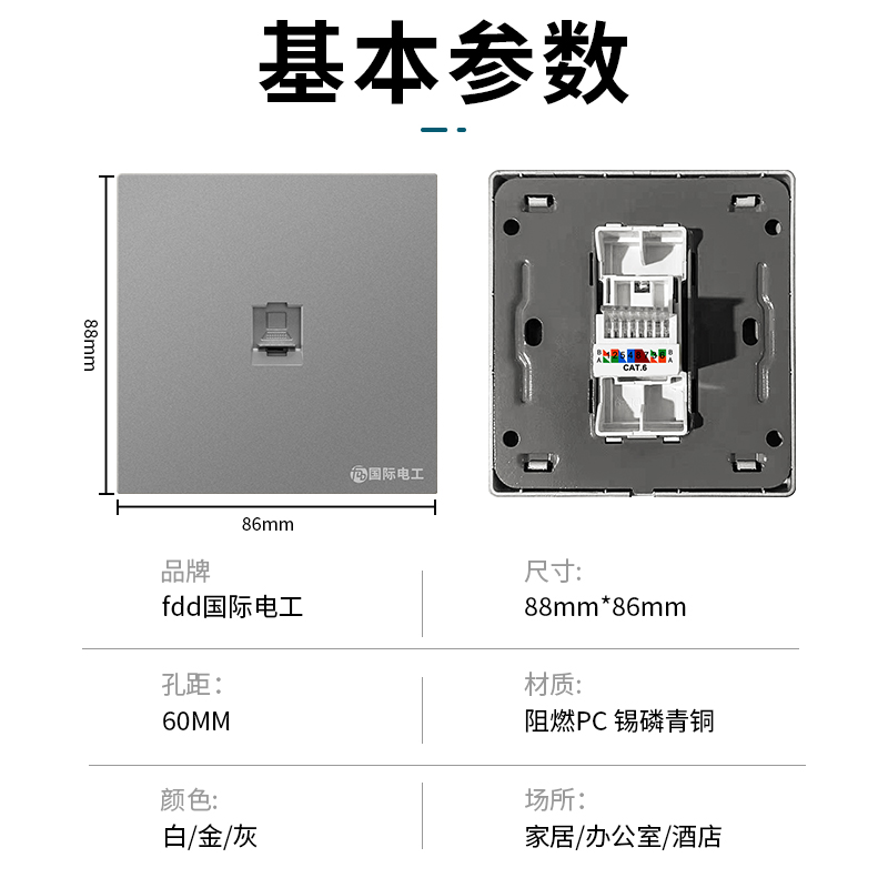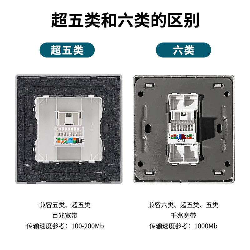 📚 86型6类电脑网络宽带插座面板六类网线暗装单双网口信息千兆模块