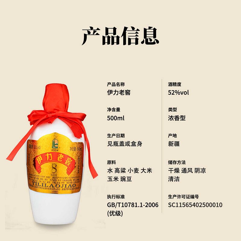 📚 新疆白酒伊力老窖大老窖高度52度500ml*6瓶浓香型纯粮食伊犁伊利