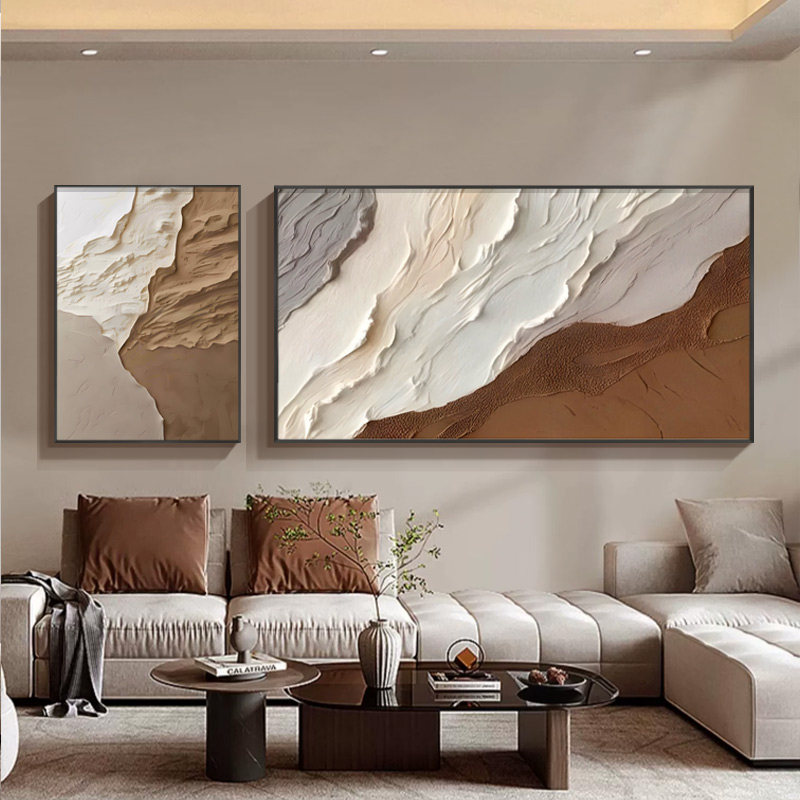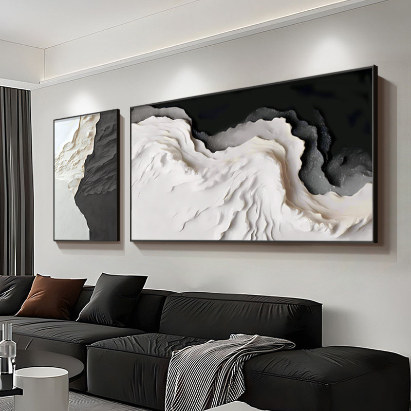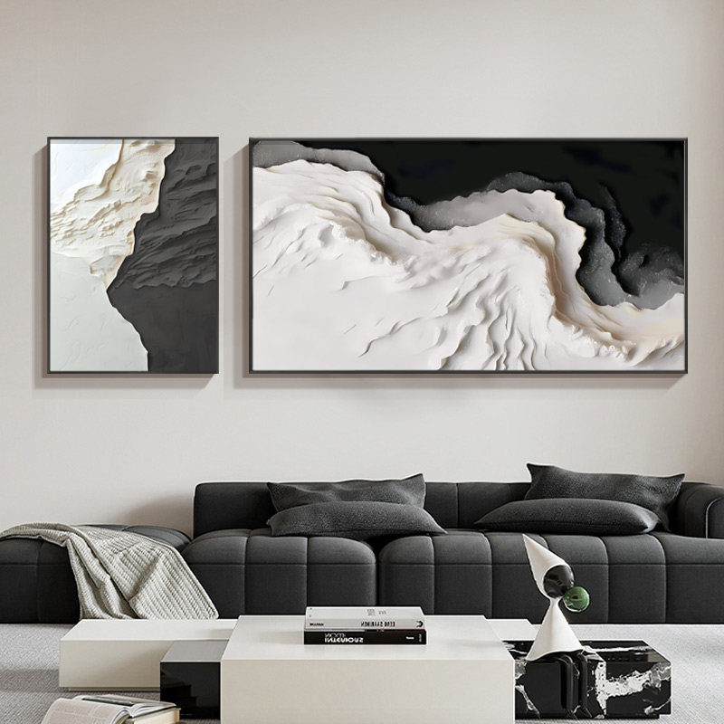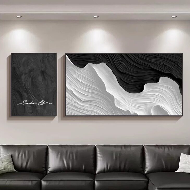 📚 极简高级感客厅装饰画意式黑白灰沙发背景墙壁画简约抽象横版挂画