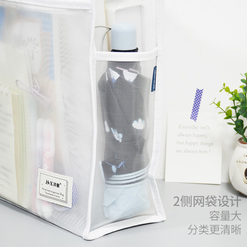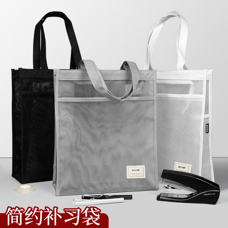 📚 手提拉链网袋简约A4透明大容量文件袋尼龙网纱作业学习袋多功能学