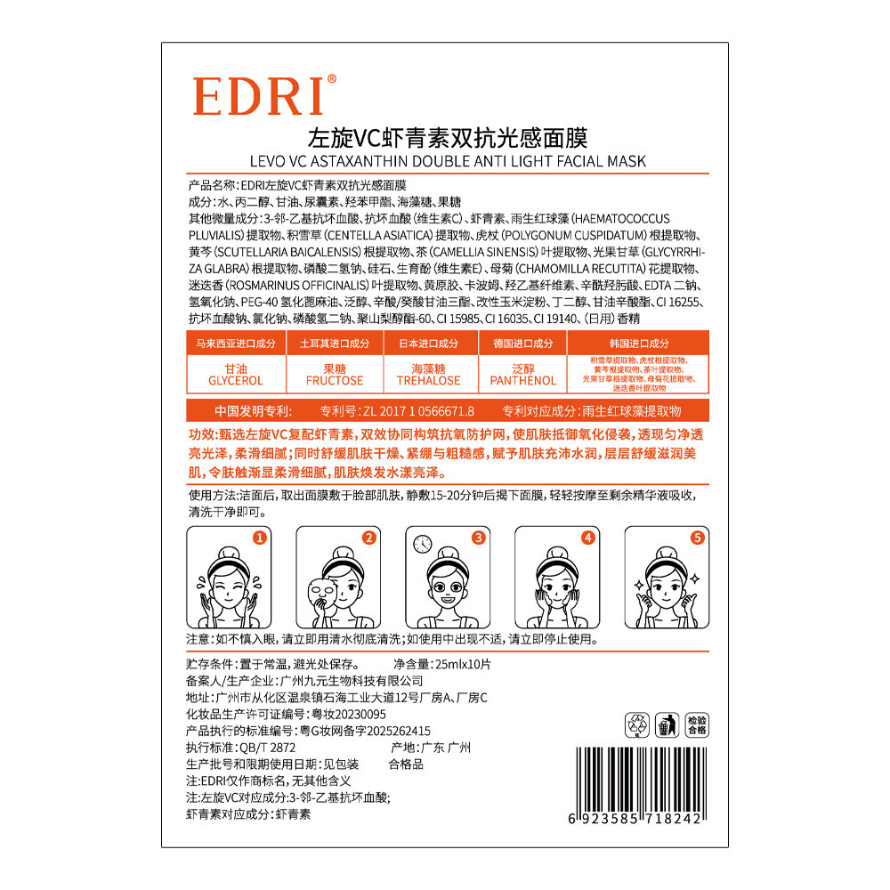 📚 【阿里健康自营】EDRI左旋VC虾青素双抗光感面膜25mlx10片