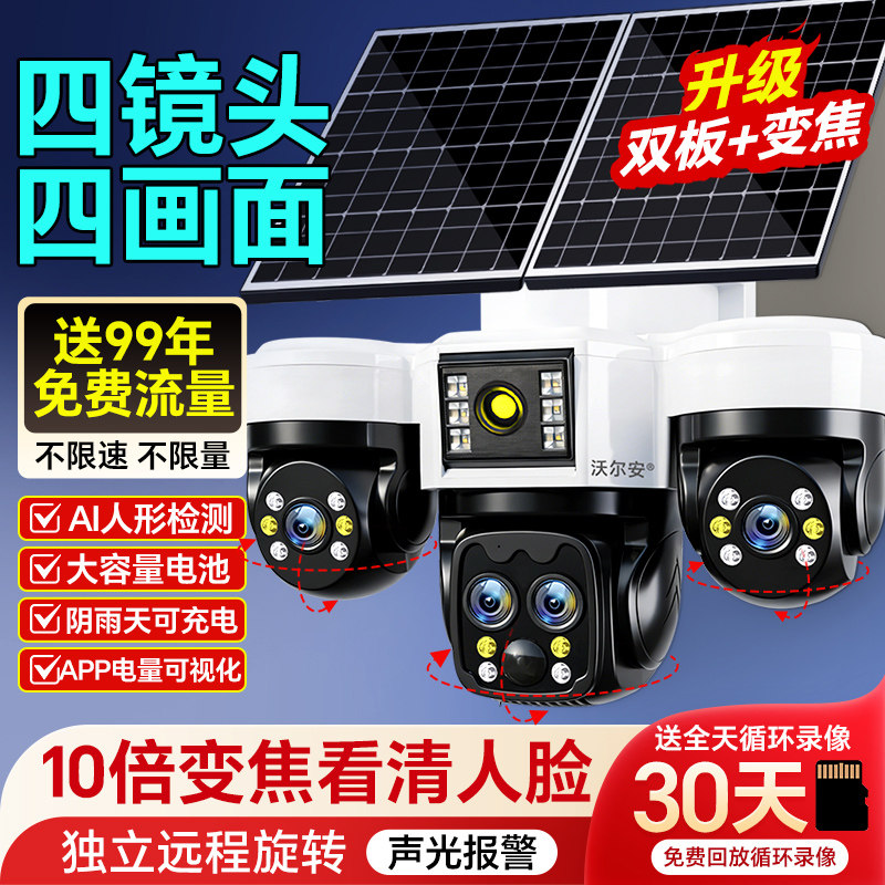 📚 太阳能监控器360度无死角手机远程室外高清家用免插电监控摄像头