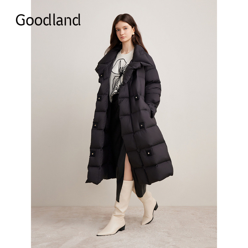 今天,我要给大家种草一款超级好看又实用的冬季时尚单品——Goodland美地女装冬季时尚高克重厚实长款廓形大翻领羽绒服!🧥