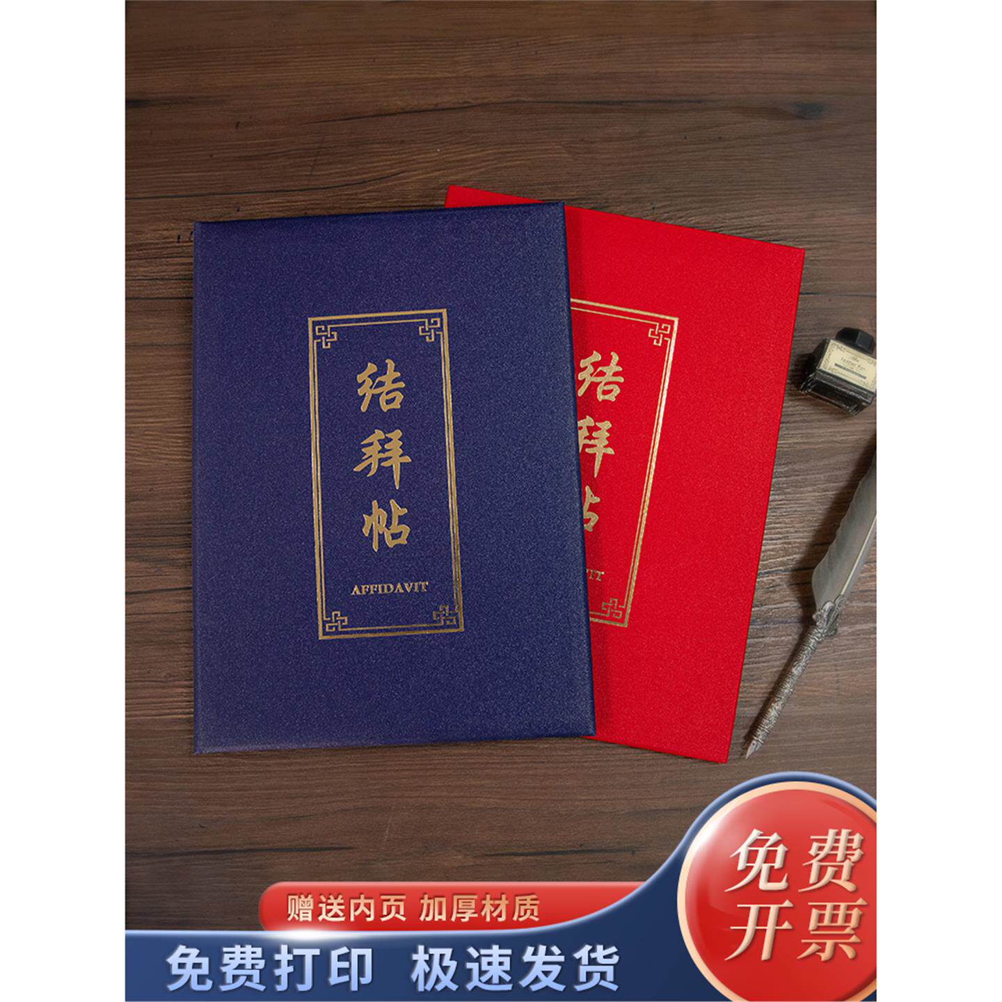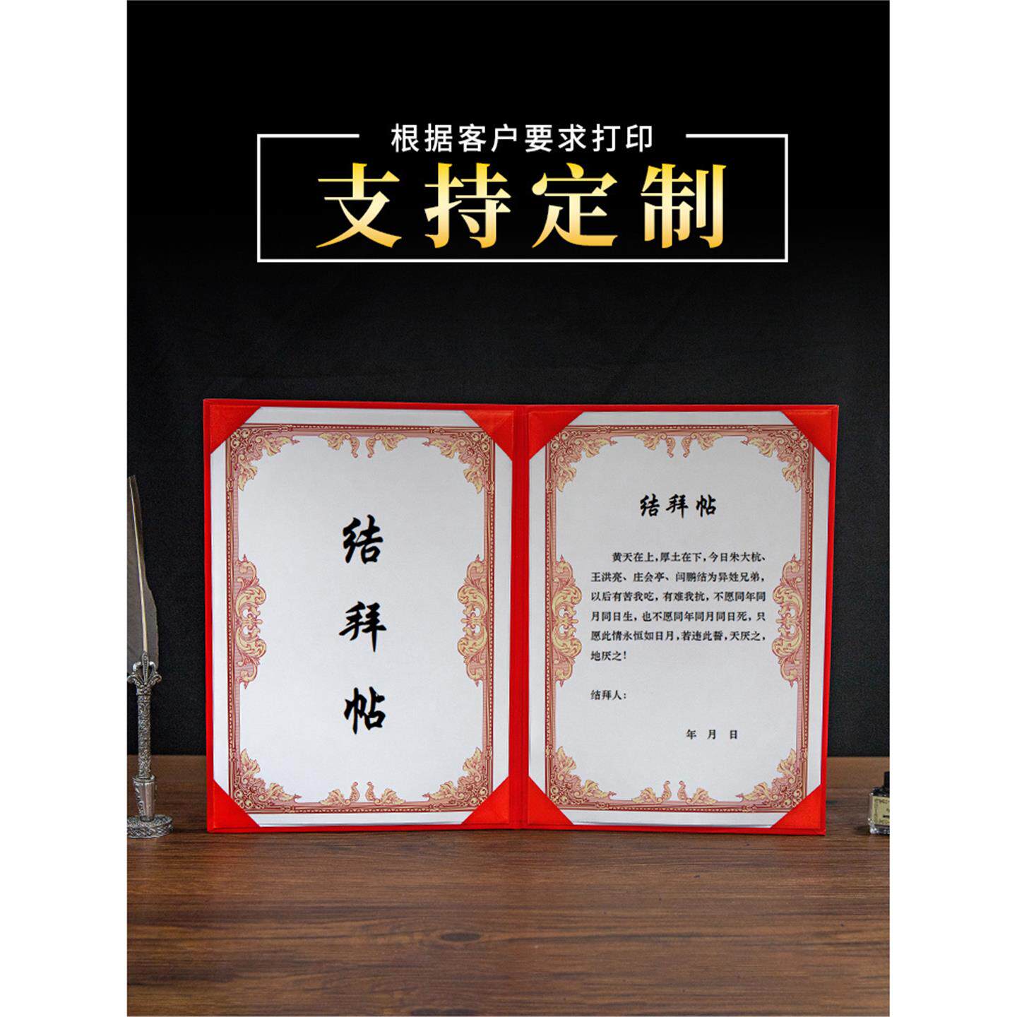 📚 结拜帖外壳封面A4拜把子兄弟情义信物金兰帖证书定制烫金蓝色红色