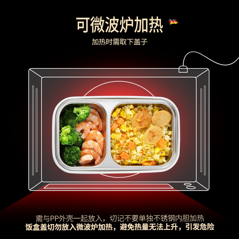 📚 304不锈钢保温饭盒上班族分隔型餐盒双层微波炉可加热学生便当盒
