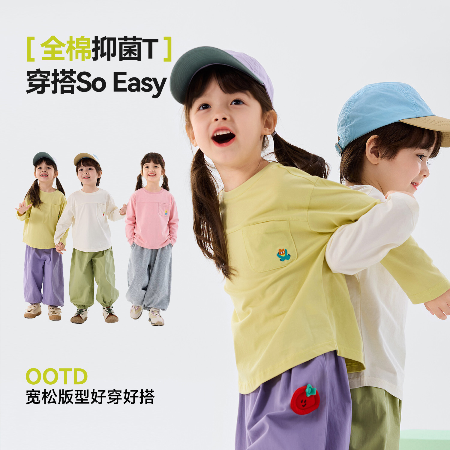 📚 【100%棉】嘟嘟家男童长袖T恤春季儿童上衣女童打底春装宝宝内搭t