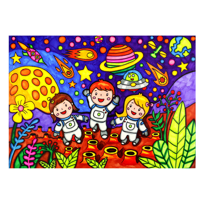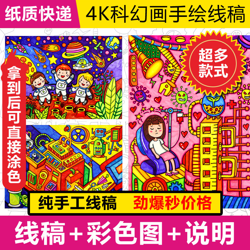 📚 4开科幻画模板线稿涂色8开线描纸质半成品A3手绘科技幻想科技创新
