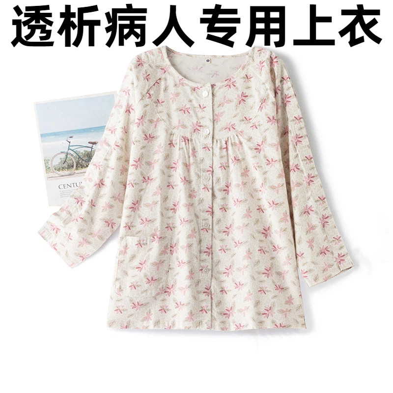📚 透析病人专用上衣秋冬男女全棉磨毛绒布保暖易脱易穿病号服一片式