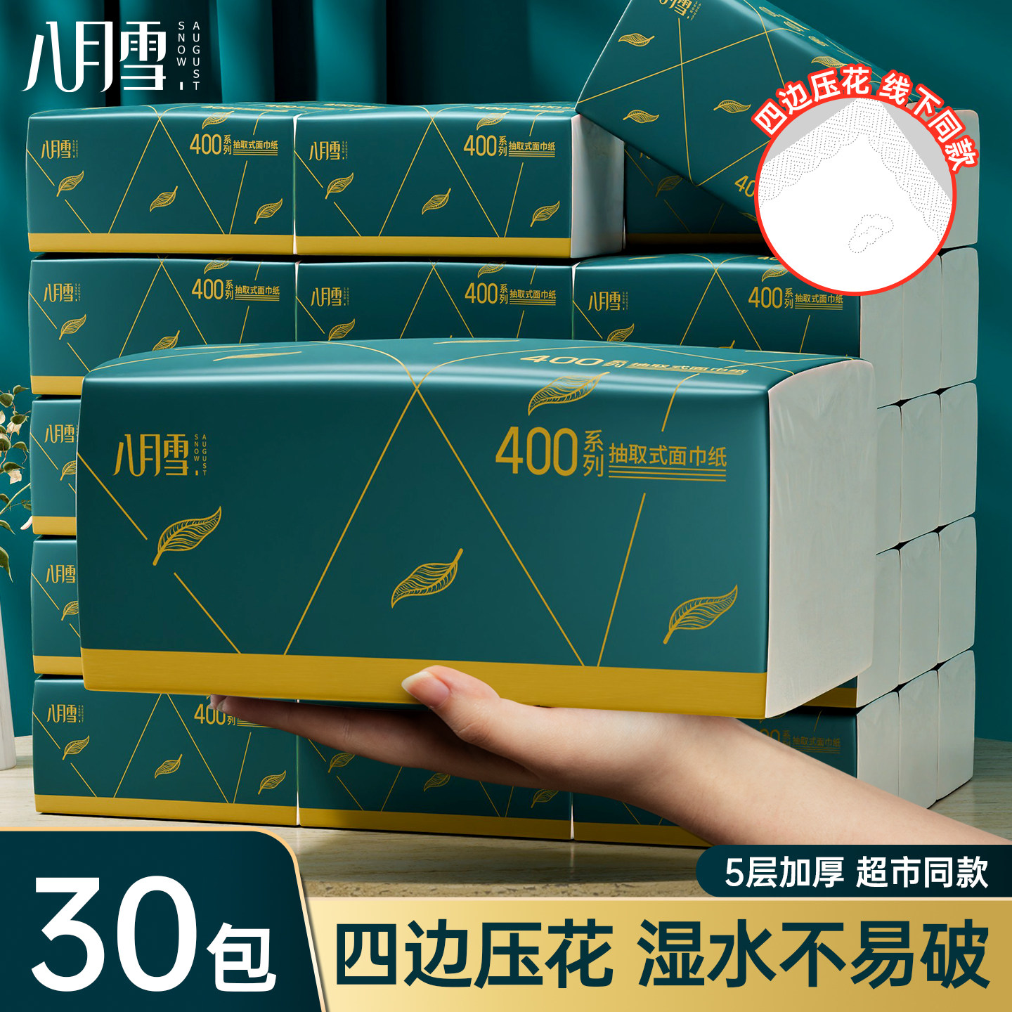 📚 八月雪抽纸巾家用实惠装整箱批卫生餐巾面巾纸卫生纸手纸柔韧亲肤