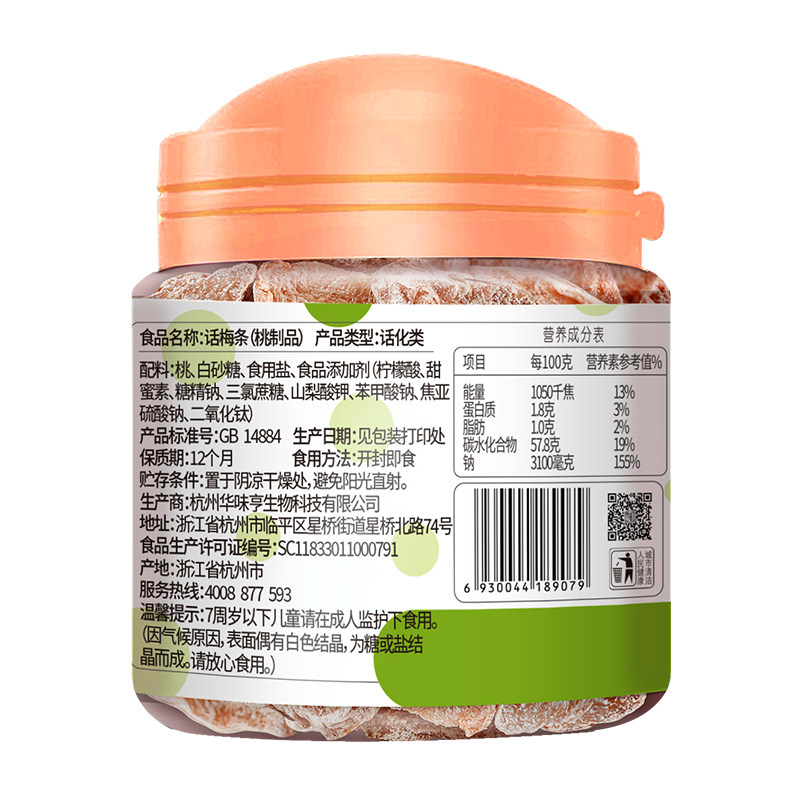🍋华味亨的这款话梅条选用优质原料,经过严格挑选和加工,保留了原汁原味的风味。每一颗话梅干梅子都是经过精心挑选,口感醇厚,酸甜适中,回味无穷。