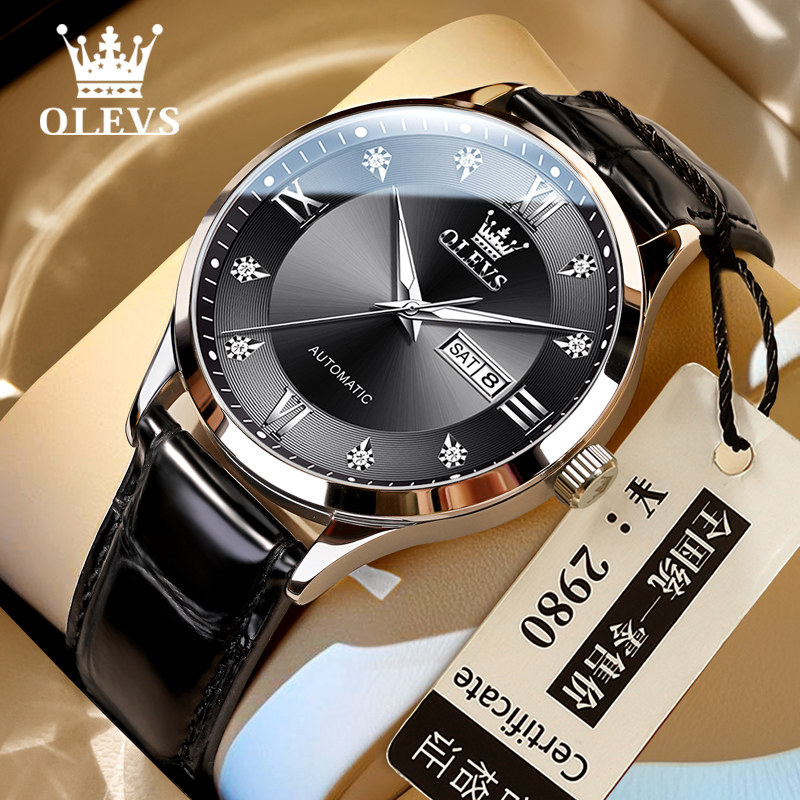 📚 瑞士欧利时手表男款机械表全自动简约正品真皮夜光名品牌男式腕表