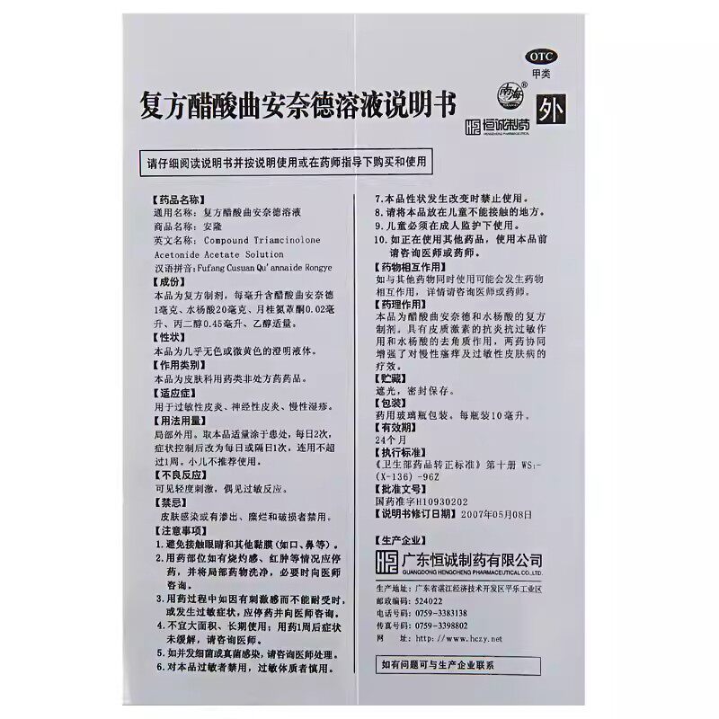 📚 安隆 复方醋酸曲安奈德溶液 10ml慢性湿疹神经过敏性皮炎外用搽剂