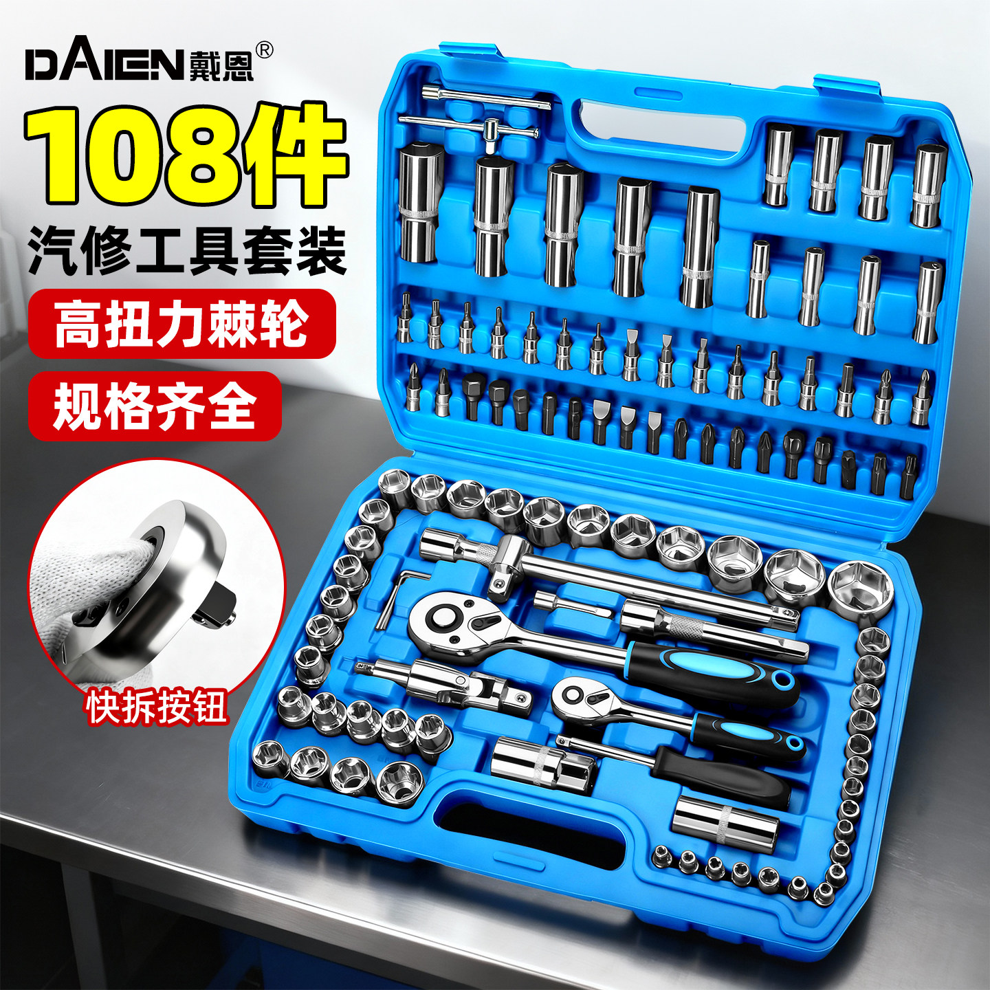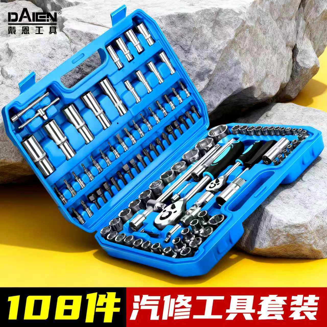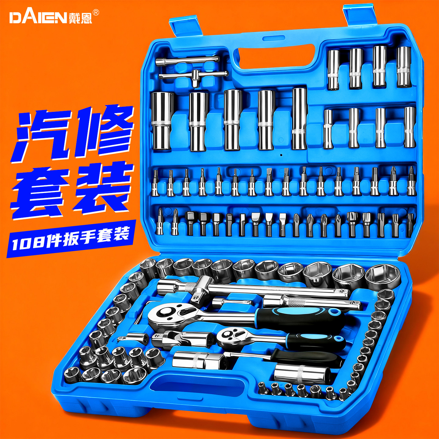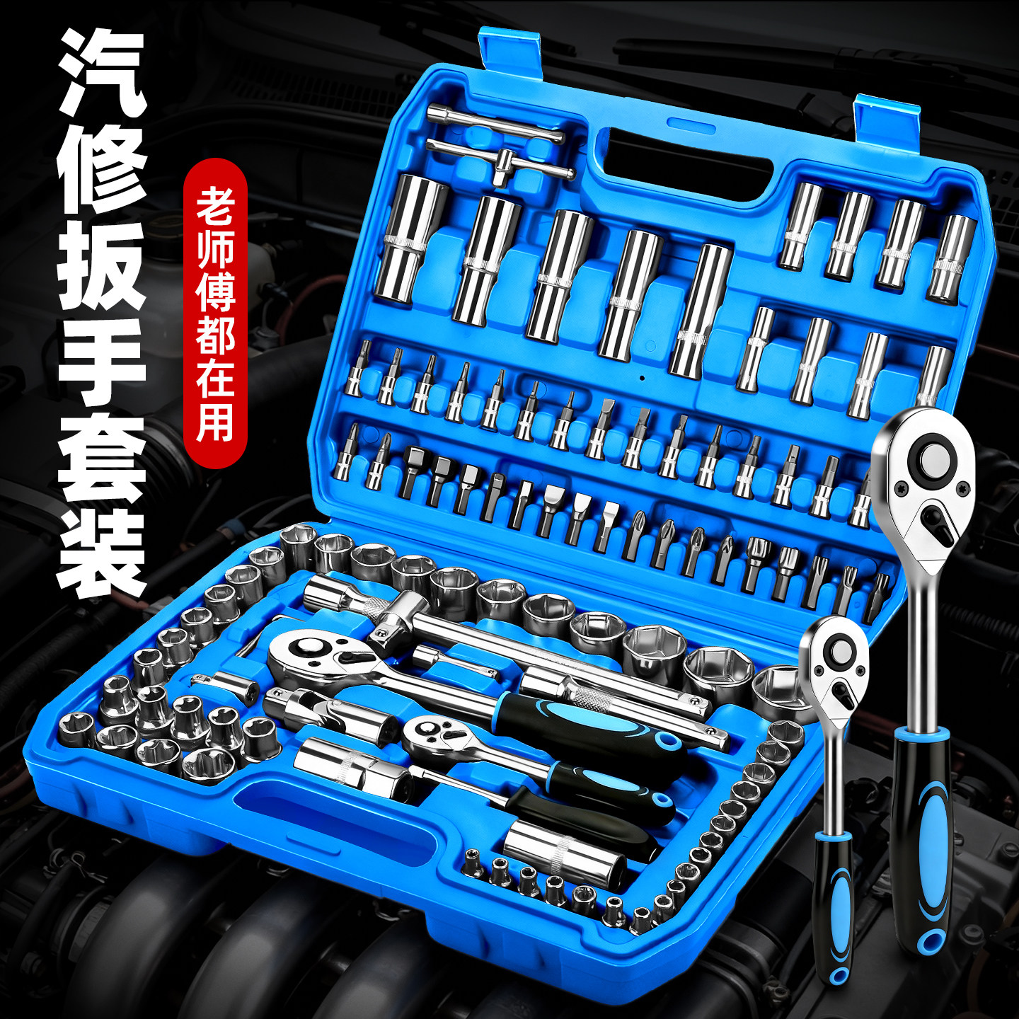 📚 汽修工具套装套筒棘轮扳手组合套管维修汽车修理摩托车工具箱大全