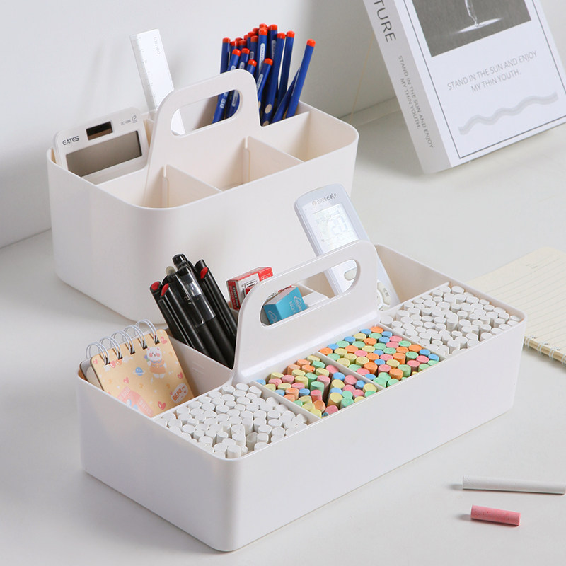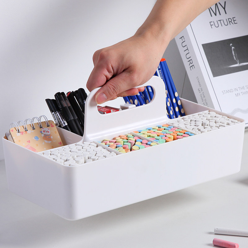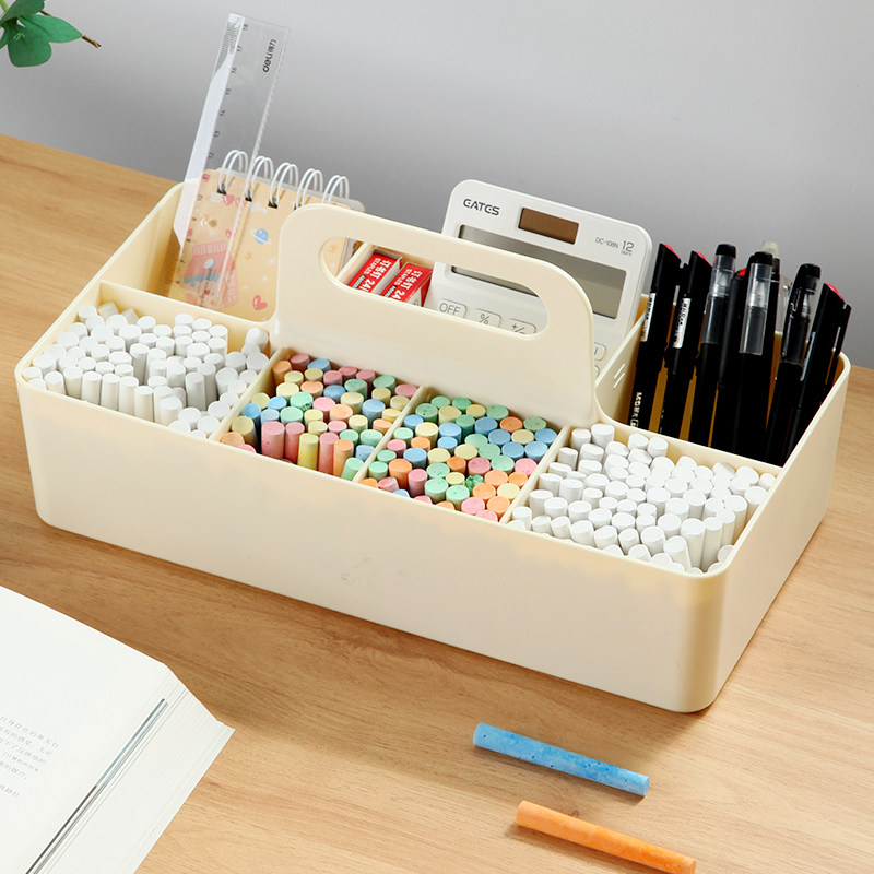 📚 粉笔盒收纳盒讲台教室黑板擦整理盒提手分格篮教师桌面文具置物架