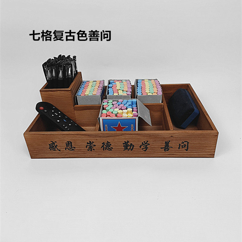 📚 粉笔盒收纳盒讲台木质长方形多格教师桌面杂物分类托盘木盒定制