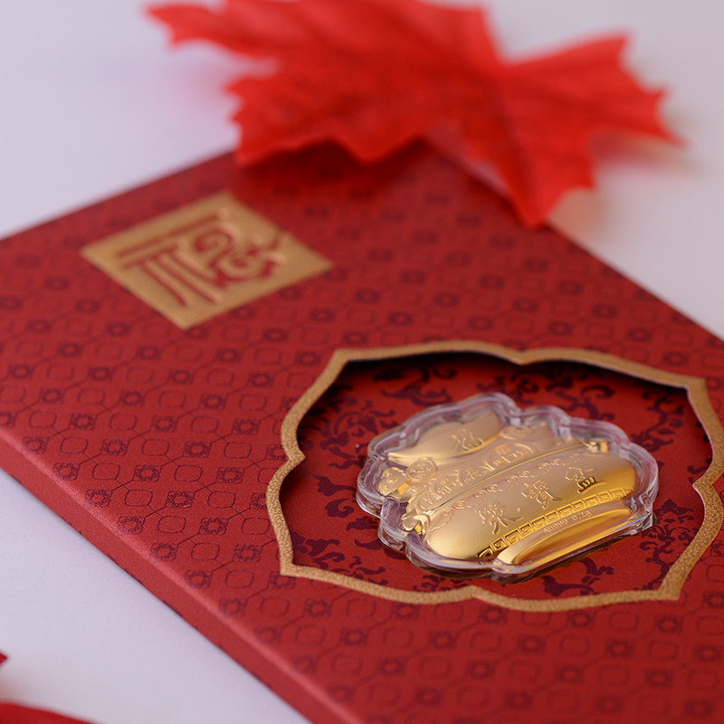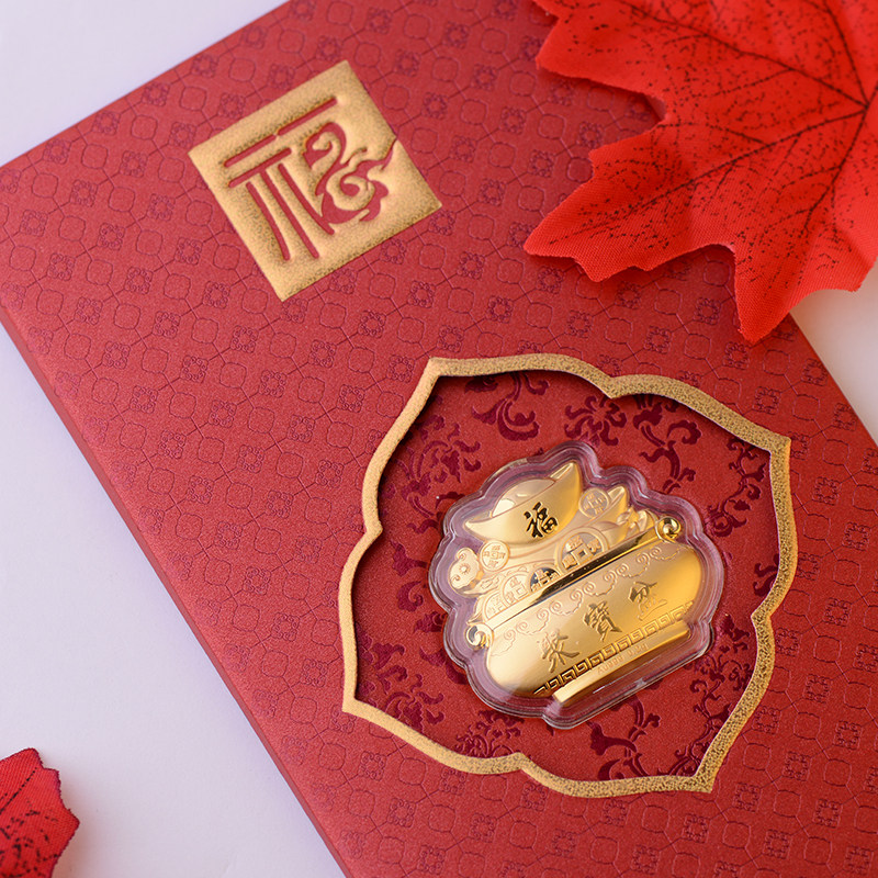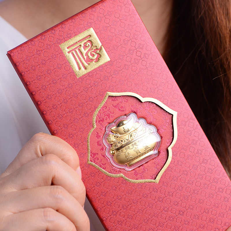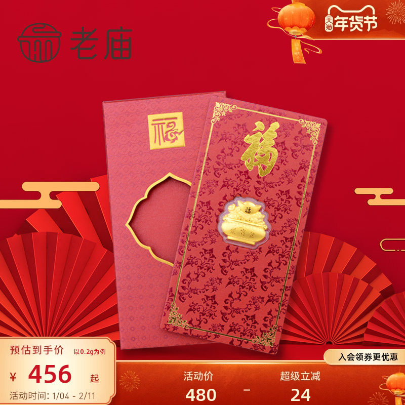 📚 老庙黄金足金金箔金钞聚宝盆元宝贺岁红包宝宝礼物周年工艺金条