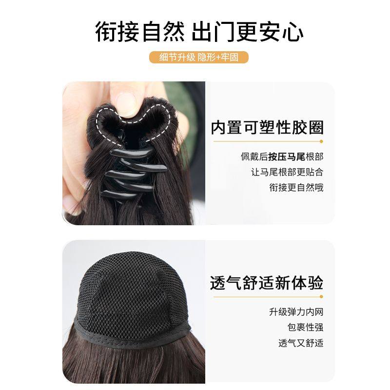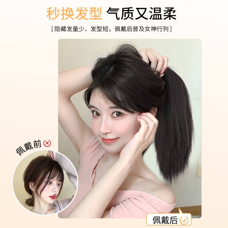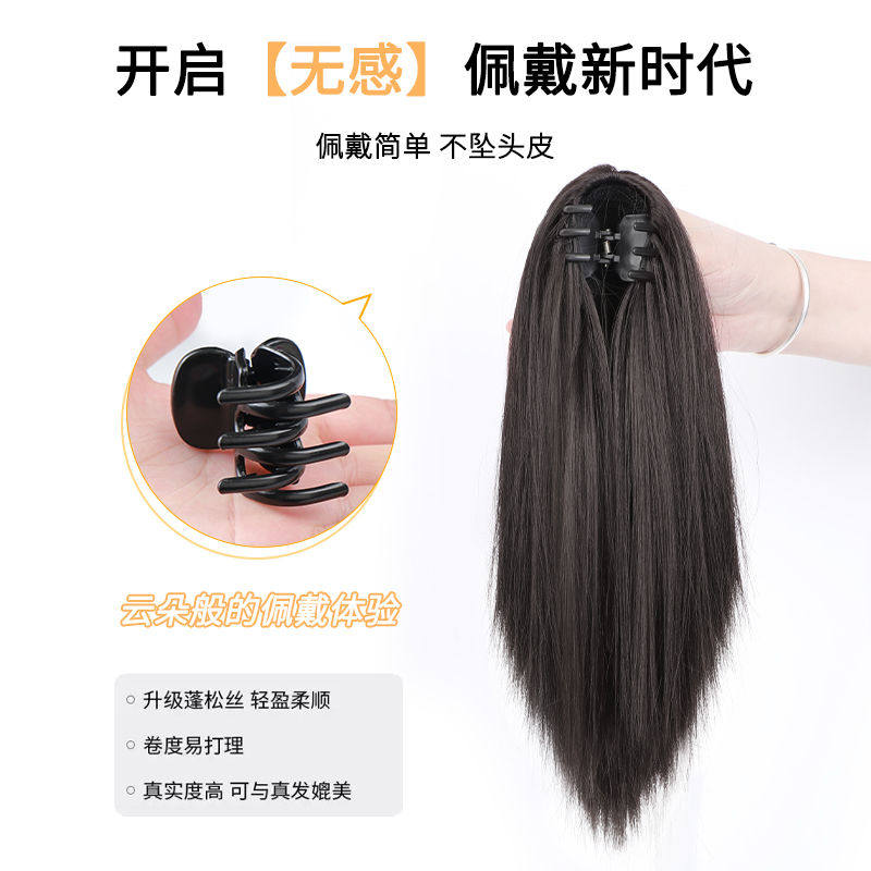 📚 假发女直发马尾仿真发高抓夹式短直发可扎低辫子夹头发抓夹式马尾