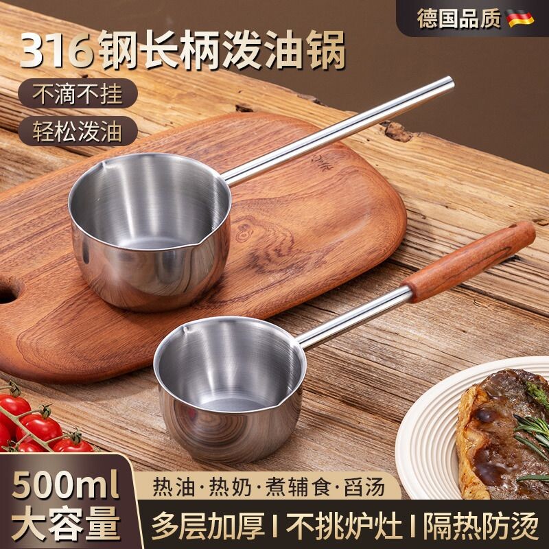 📚 热油锅316不锈钢泼油锅家用迷你淋油煎油炝油小锅厨房平底锅通用