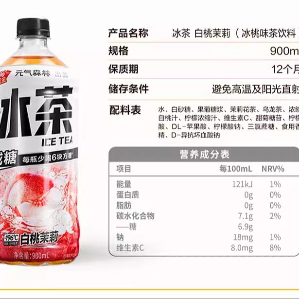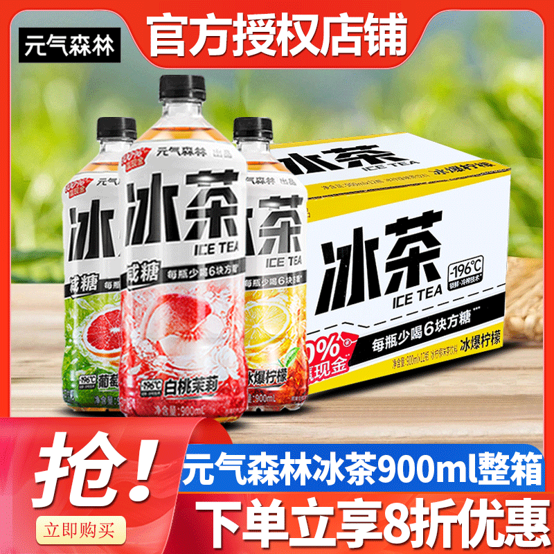 📚 元气森林冰茶900ml*12瓶整箱白桃茉莉葡萄柠檬茶维生素C冰茶饮料