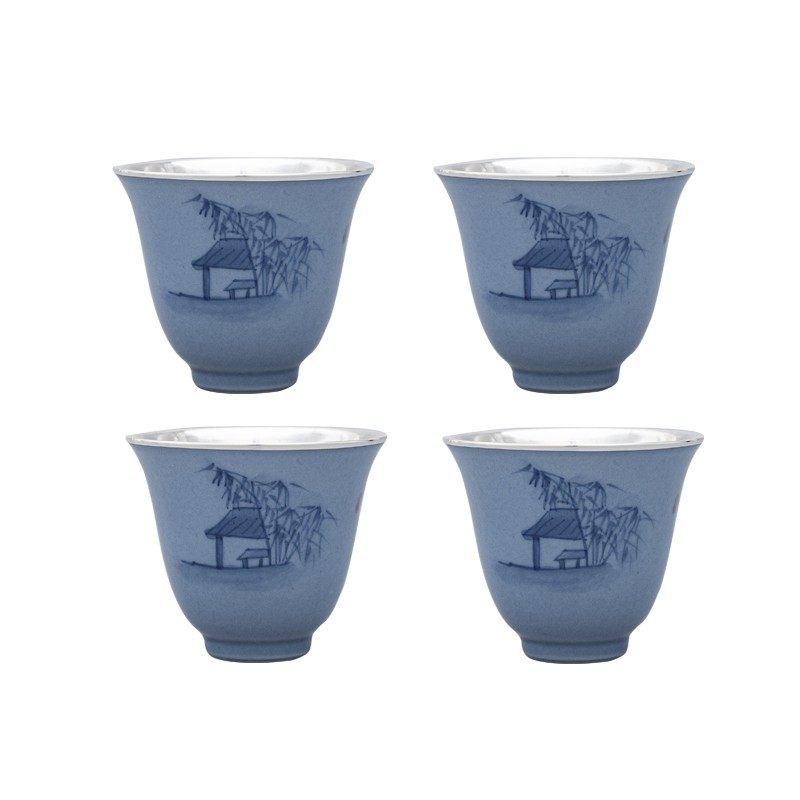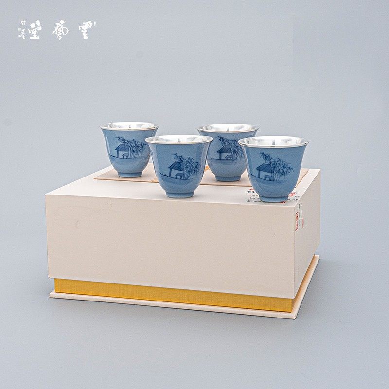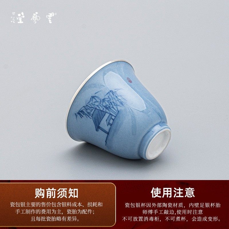 📚 芸术云艺堂 足银999瓷包银杯纯手工青花归隐品茗杯家用茶具茶杯