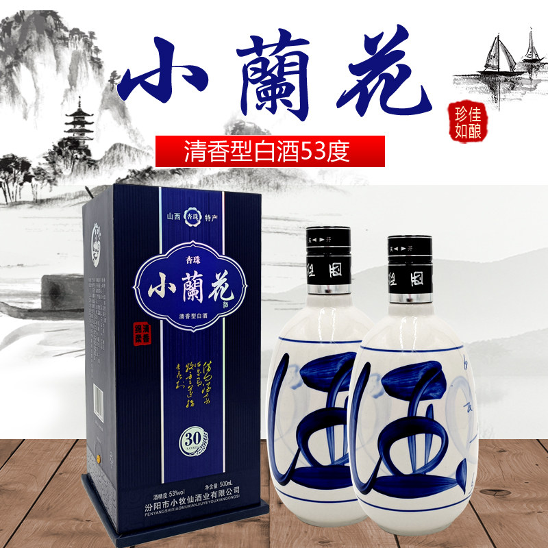 📚 山西杏花镇产地粮食酒小兰花酒53度500ml*6瓶清香型白酒清42度原