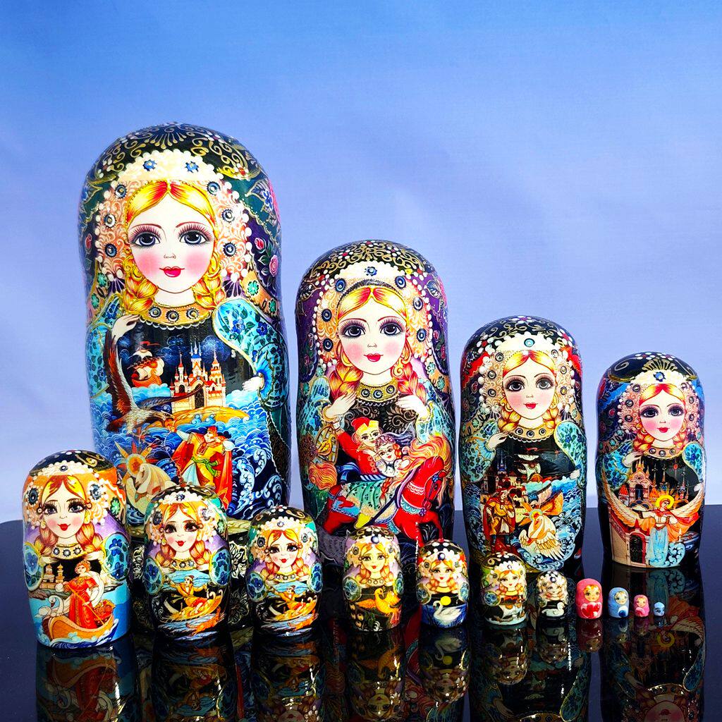 📚 俄罗斯套娃烤漆15层正品纯手工益智玩具满洲里旅游纪念品礼物椴木