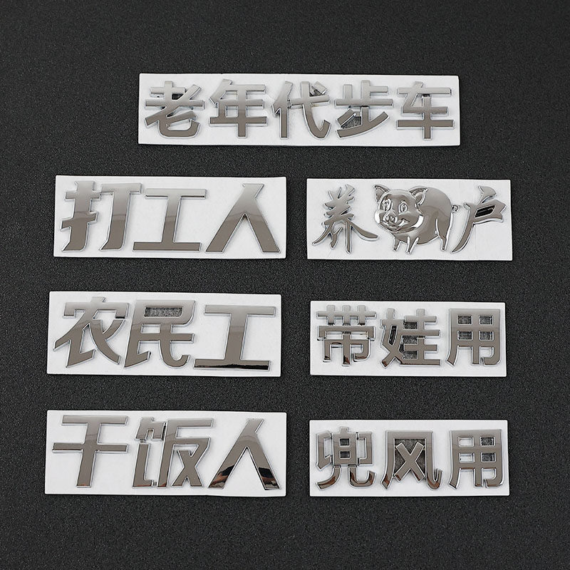 📚 3d立体金属车贴打工人低保贫困户买菜用老年代步车渣男文字装饰贴