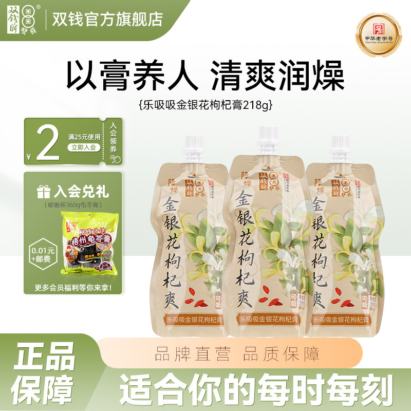 📚 双钱牌乐吸吸金银花枸杞膏218g*3袋非果冻布丁可吸食下午茶办公室