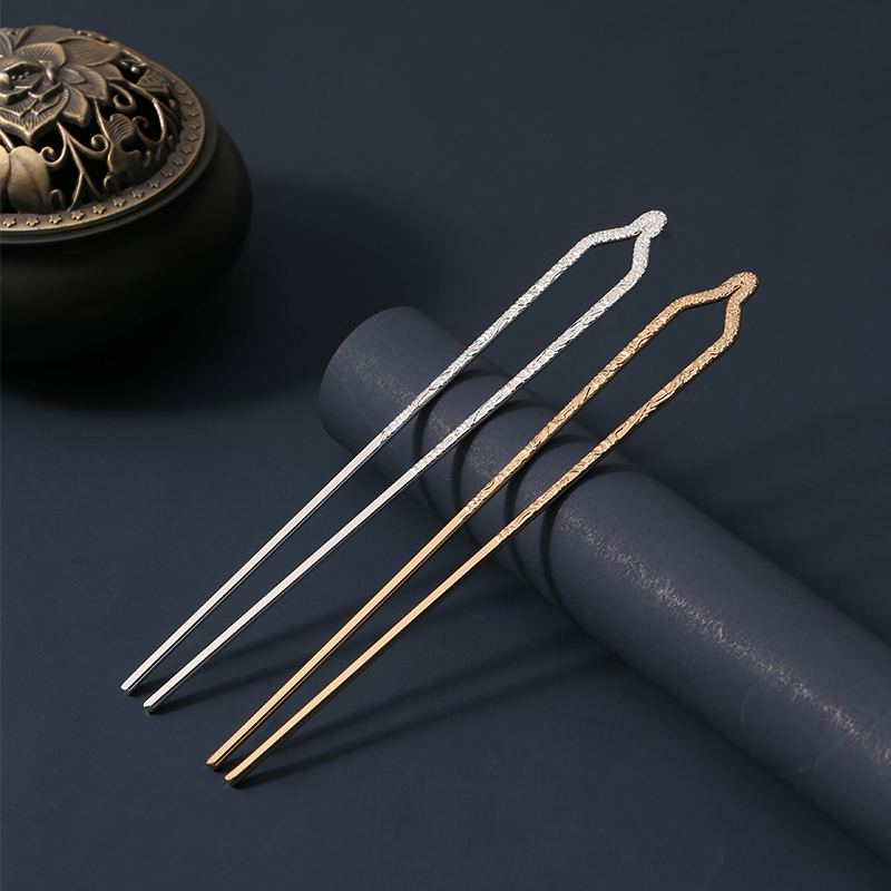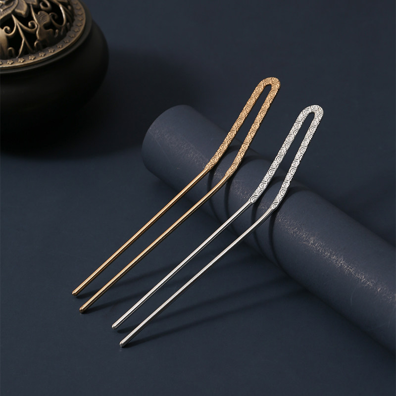 📚 唐风发饰压花云纹U型发钗古风汉服头饰日常盘发簪子基础百搭发簪