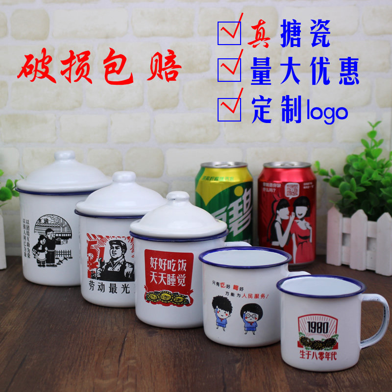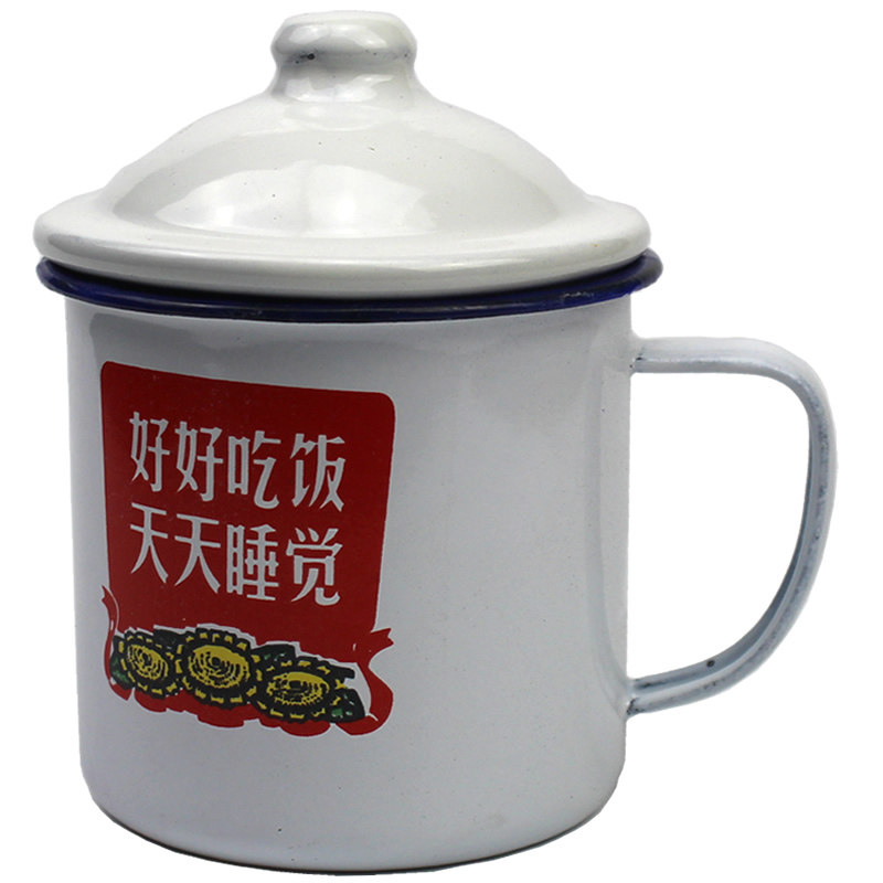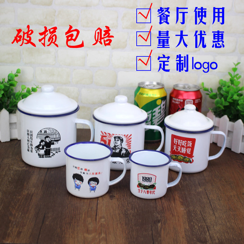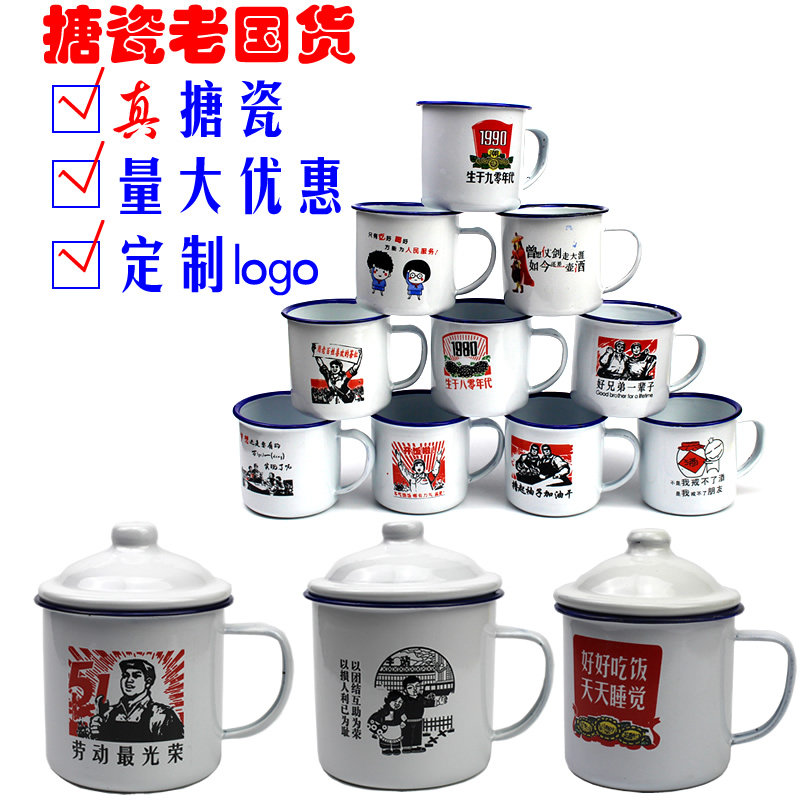 📚 搪瓷茶缸怀旧老式铁杯子带盖马克杯喝水小口大杯儿童语录随手定制