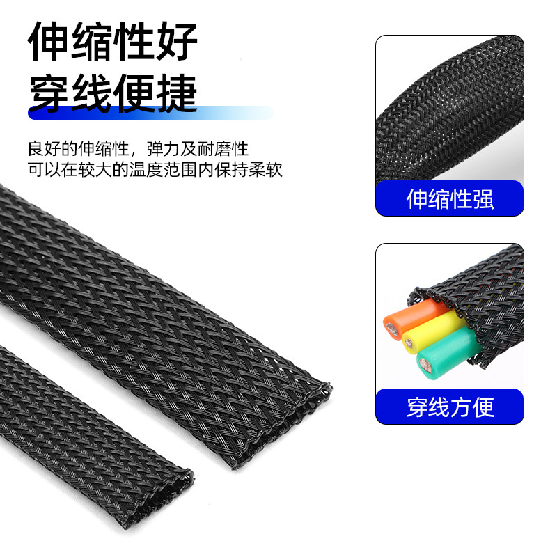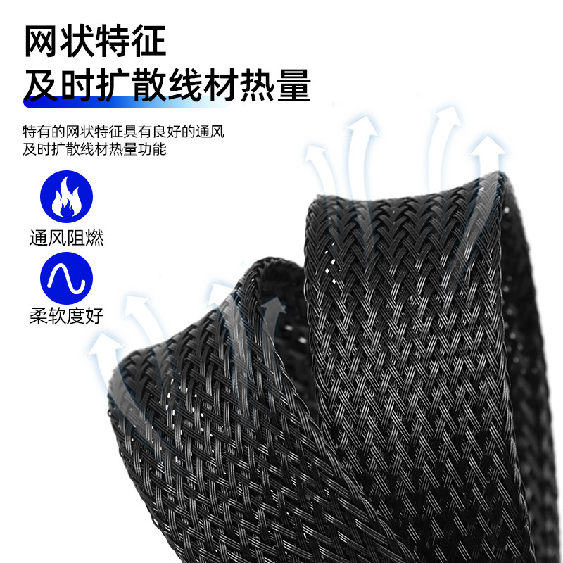 📚 三织加密PET编织网阻燃尼龙编织网管护线网管3-80mm避震蛇皮套管