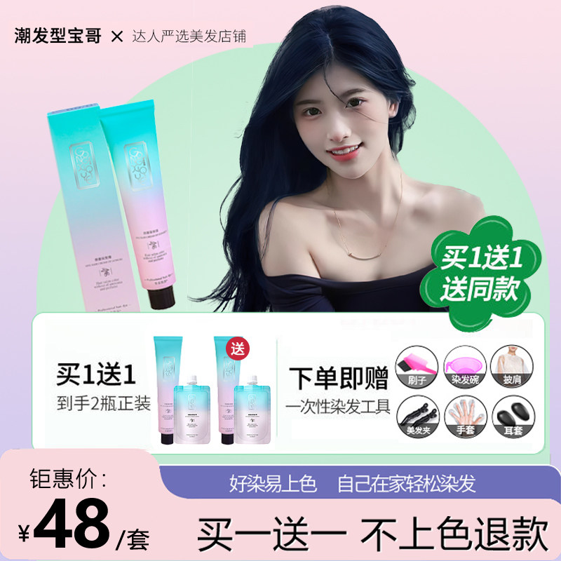 📚 潮发型宝哥蓝黑色染发剂自然黑免漂茶棕色染发膏在家染植物雾霾蓝