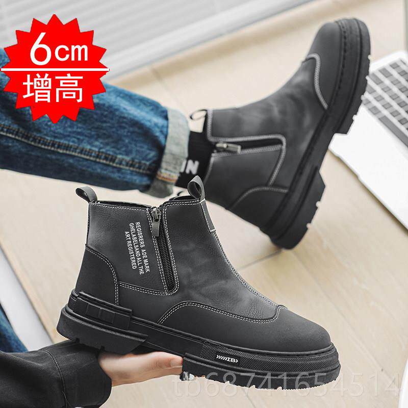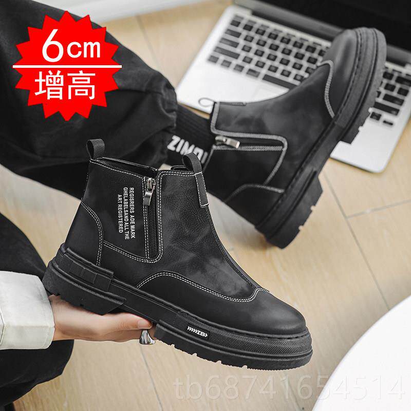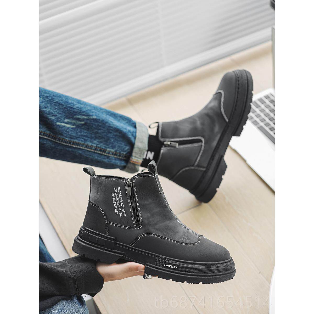 📚 正品马丁靴休惠州秋冬季伦风中帮闲工装皮鞋侧拉炼高男级感高帮男