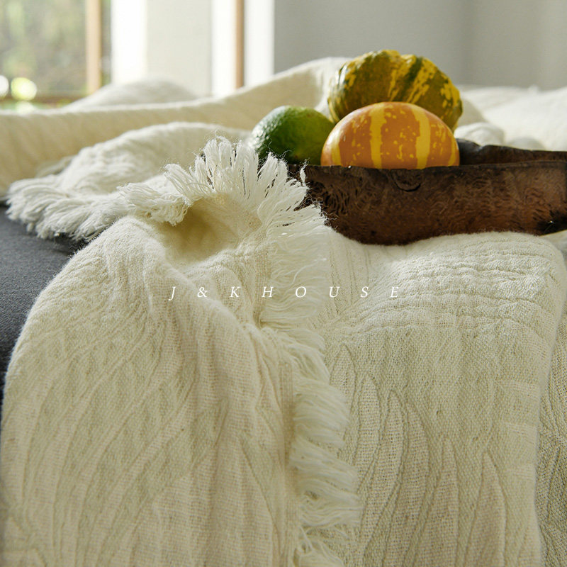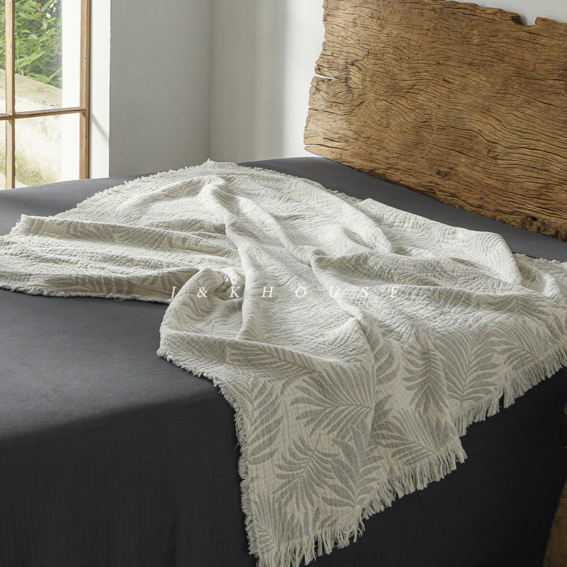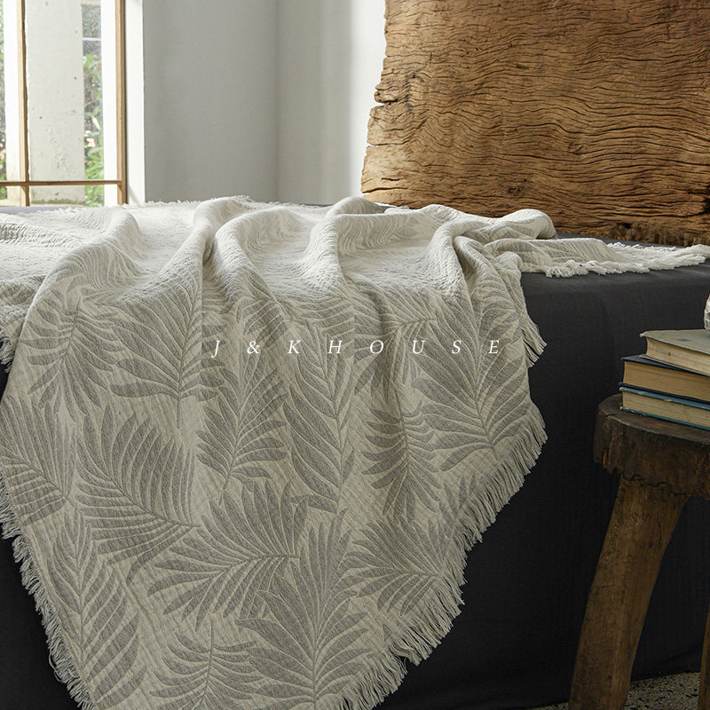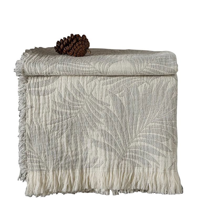 📚 Cultural|夏季午睡办公室高级毛毯四季棉纱布小毯子提花流苏盖毯