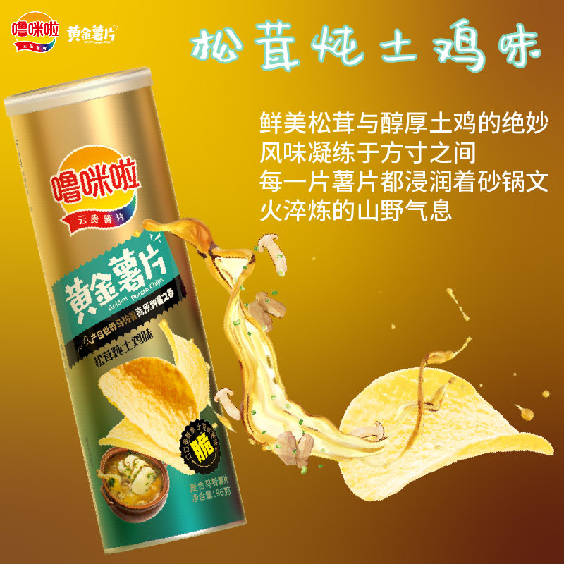 📚 噜咪啦96g*3罐黄金罐装薯片 酥脆醇香松茸炖鸡味特色薯片云贵特色