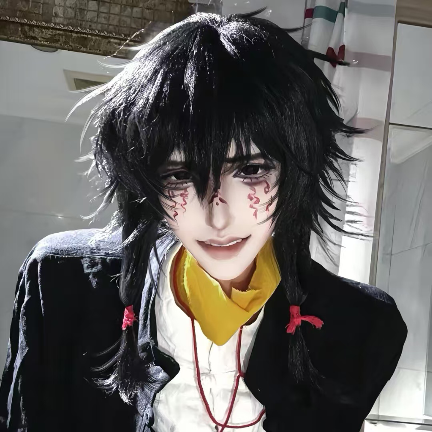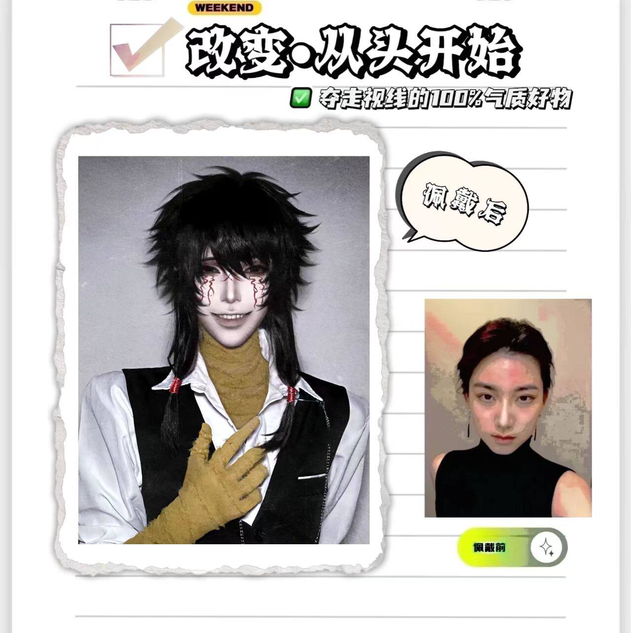 📚 假发男狼尾假发子车甫昭cos万用毛头七怪谈病娇毛坯打毛顶全头套