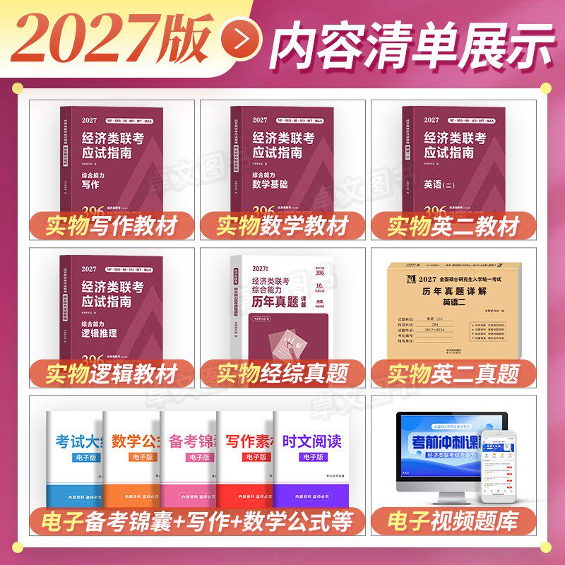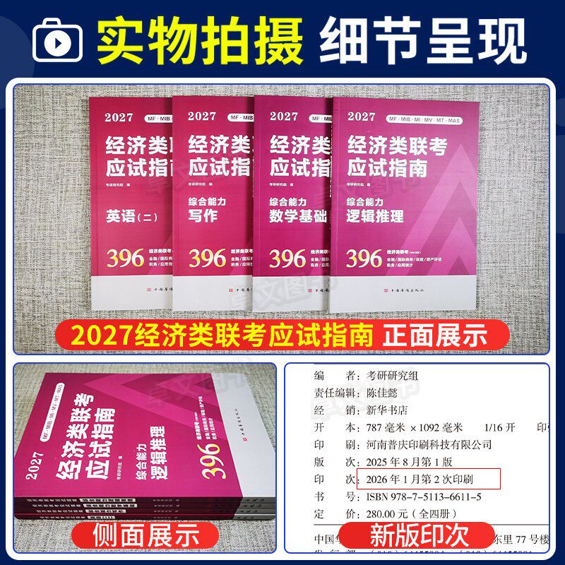 📚 新版2027考研396经济类联考综合能力应试指南教材历年真题详解试卷10年经综数学基础逻辑推理写作英语二全套考试书籍网课2026正版