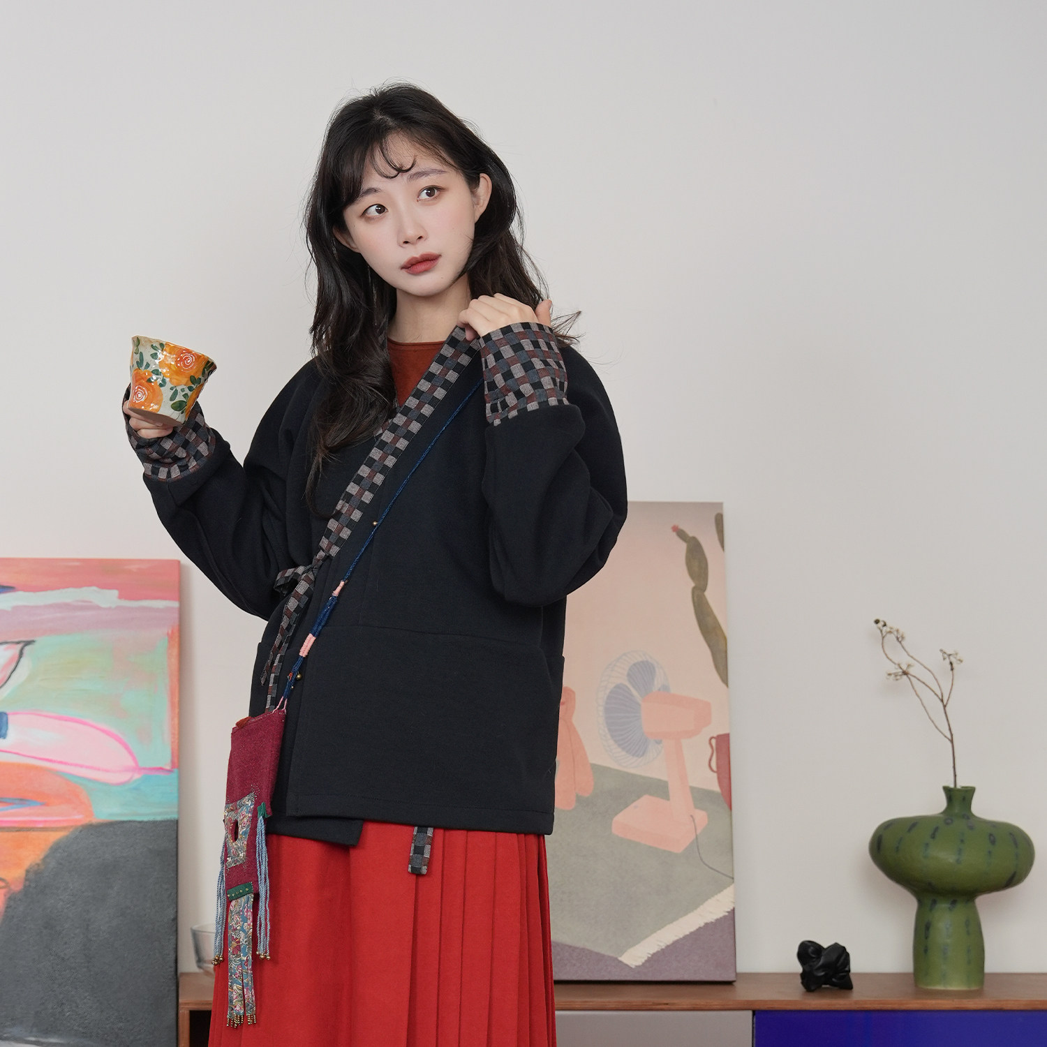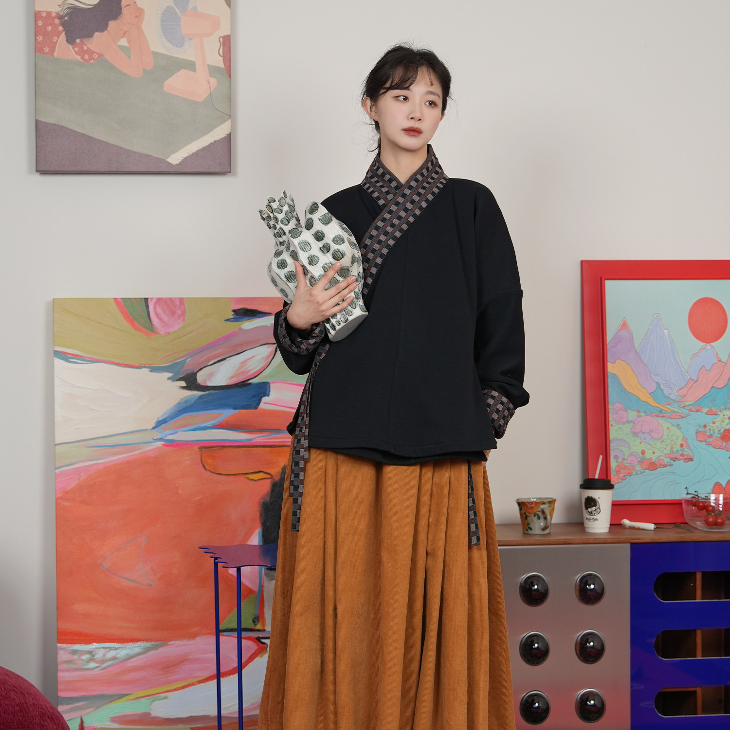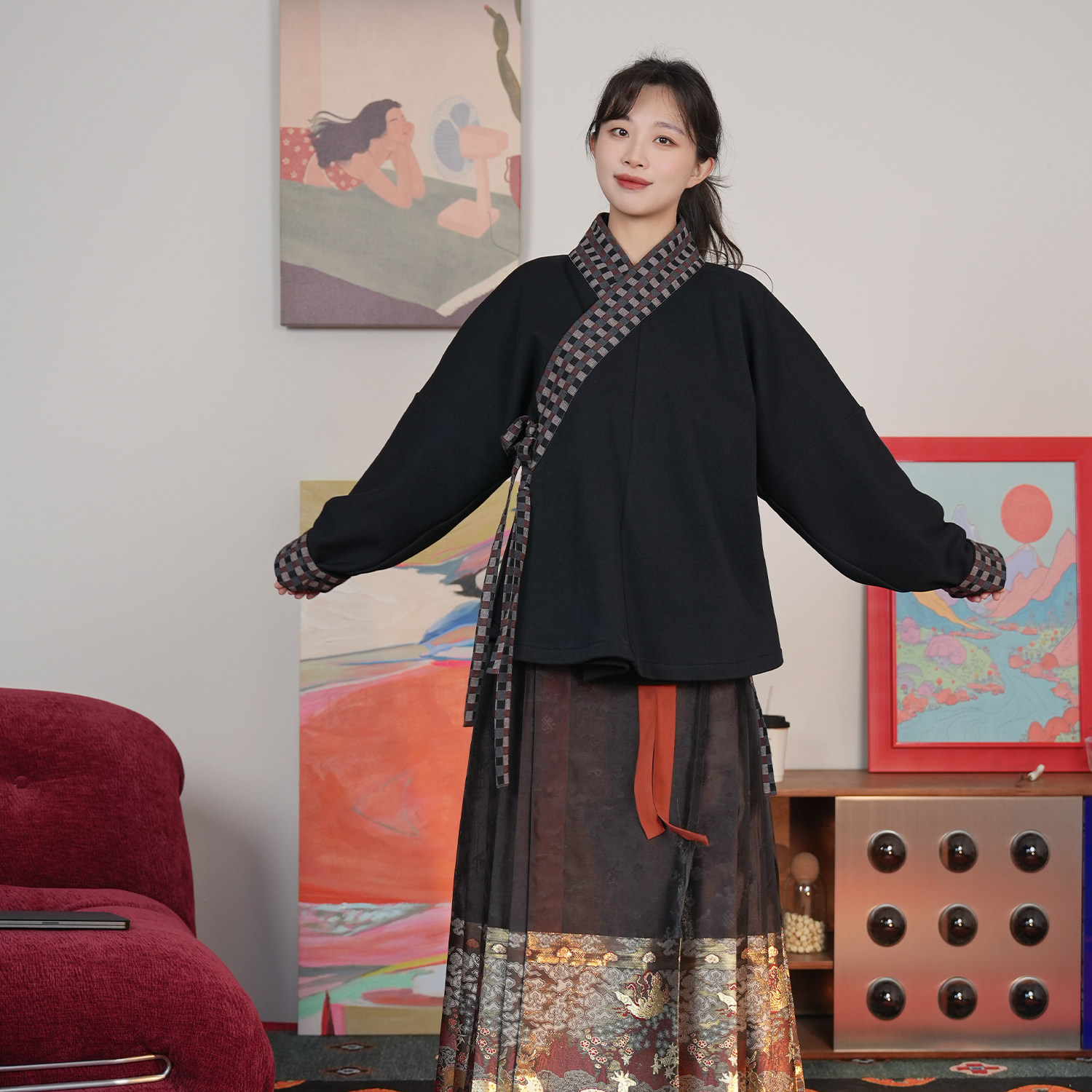 📚 谜阿凰【炽夜行热岩绒】原创汉服汉元素上衣秋冬加绒黑外套加厚女