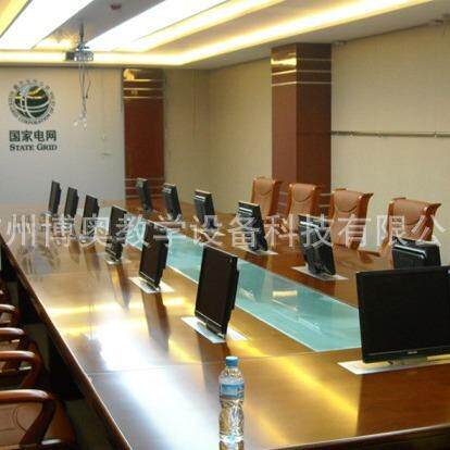 📚 统多媒体无纸化会议升升降BOAO-HY系电动长方形实议木油漆降一体