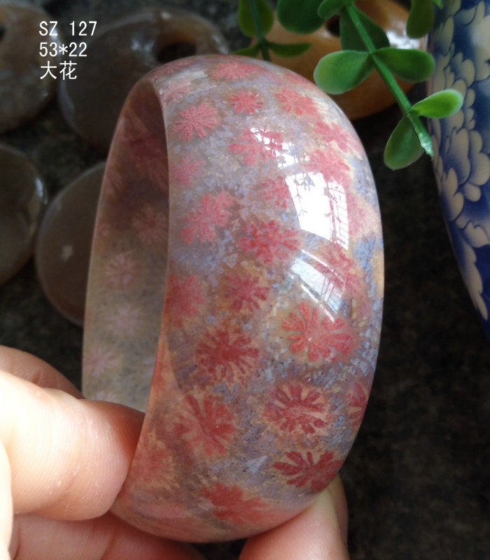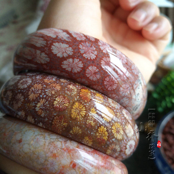 📚 已结缘 天然台湾珊瑚玉手镯手链大彩花紫红色精品收藏菊花原石