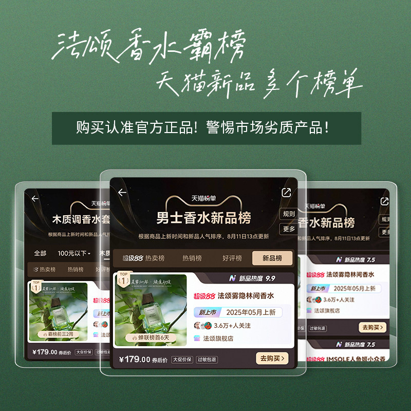 08¥ HU108 D7j65TTvTEO¥ https://m.tb.cn/h.ipU0aS2 FENSHINE法颂雾隐林间中性香水清新绿意木质调男士女士男生礼盒 --------------------- 【原售价】299元 【现售价】229元。