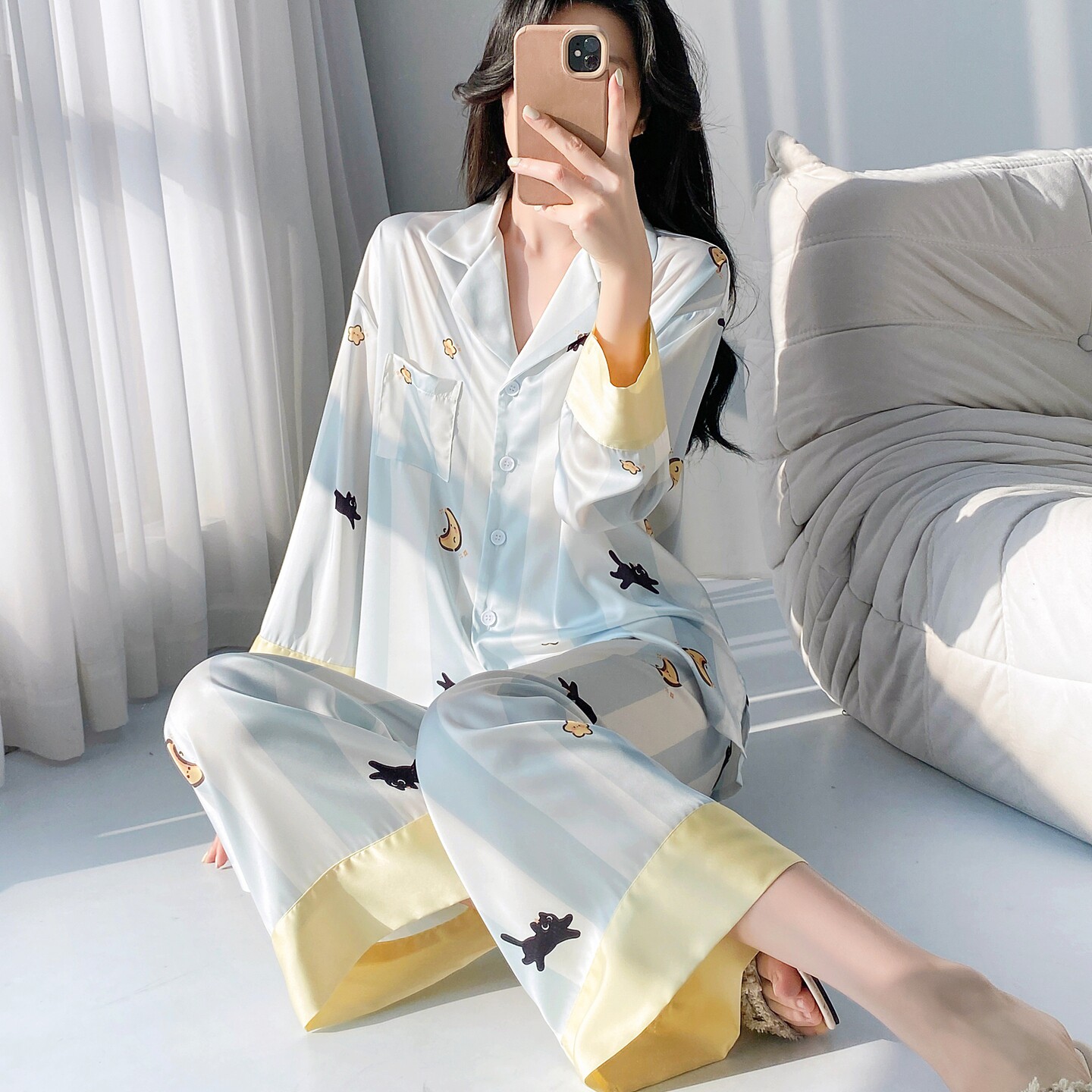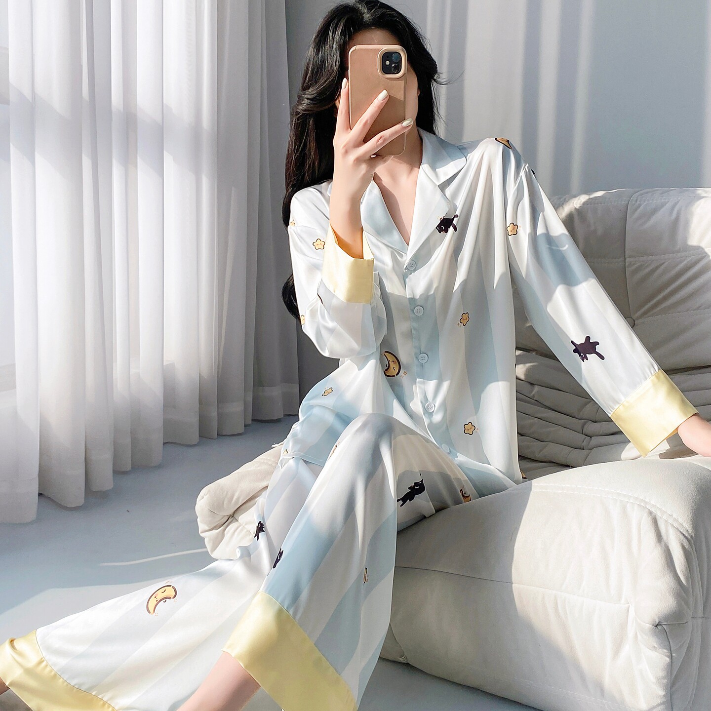 📚 超好看独特绝美漂亮出门睡衣女款冰丝2026新款春秋季长袖长裤猫咪