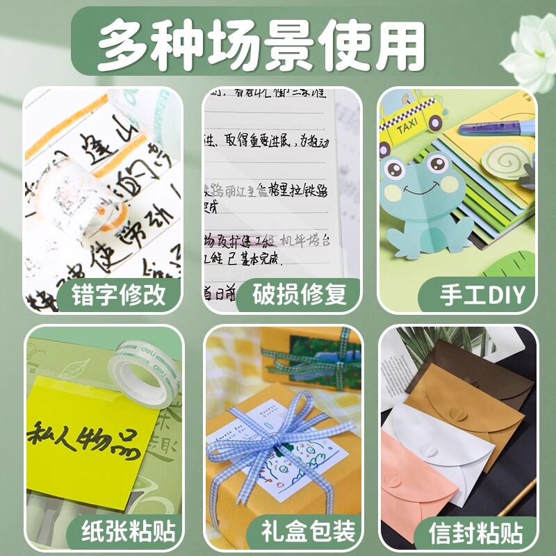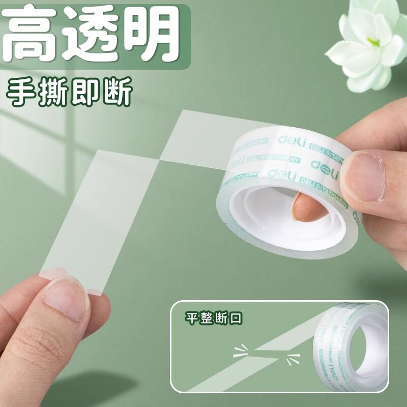 📚 得力文具透明胶带学生用细窄易撕胶带强粘小号透明胶布12mm宽改错题粘错字手工胶带儿童胶纸不留胶可粘字神器