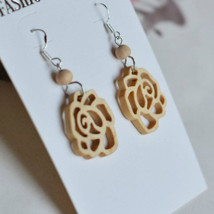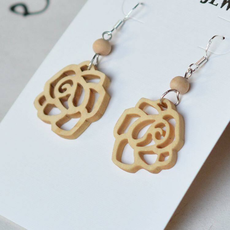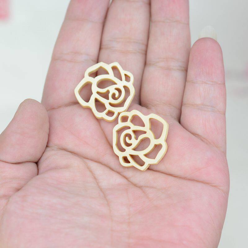📚 原木玫瑰镂空木片耳环片手工DIY配件大漆漆器漆画材料实木珠复古