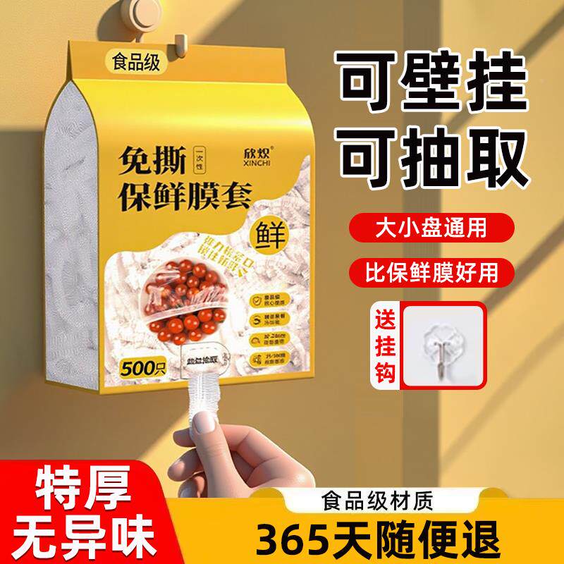 📚 次日达一次性鲜膜剩套食品级家用壁挂抽保取保袋保鲜险菜碗专用保