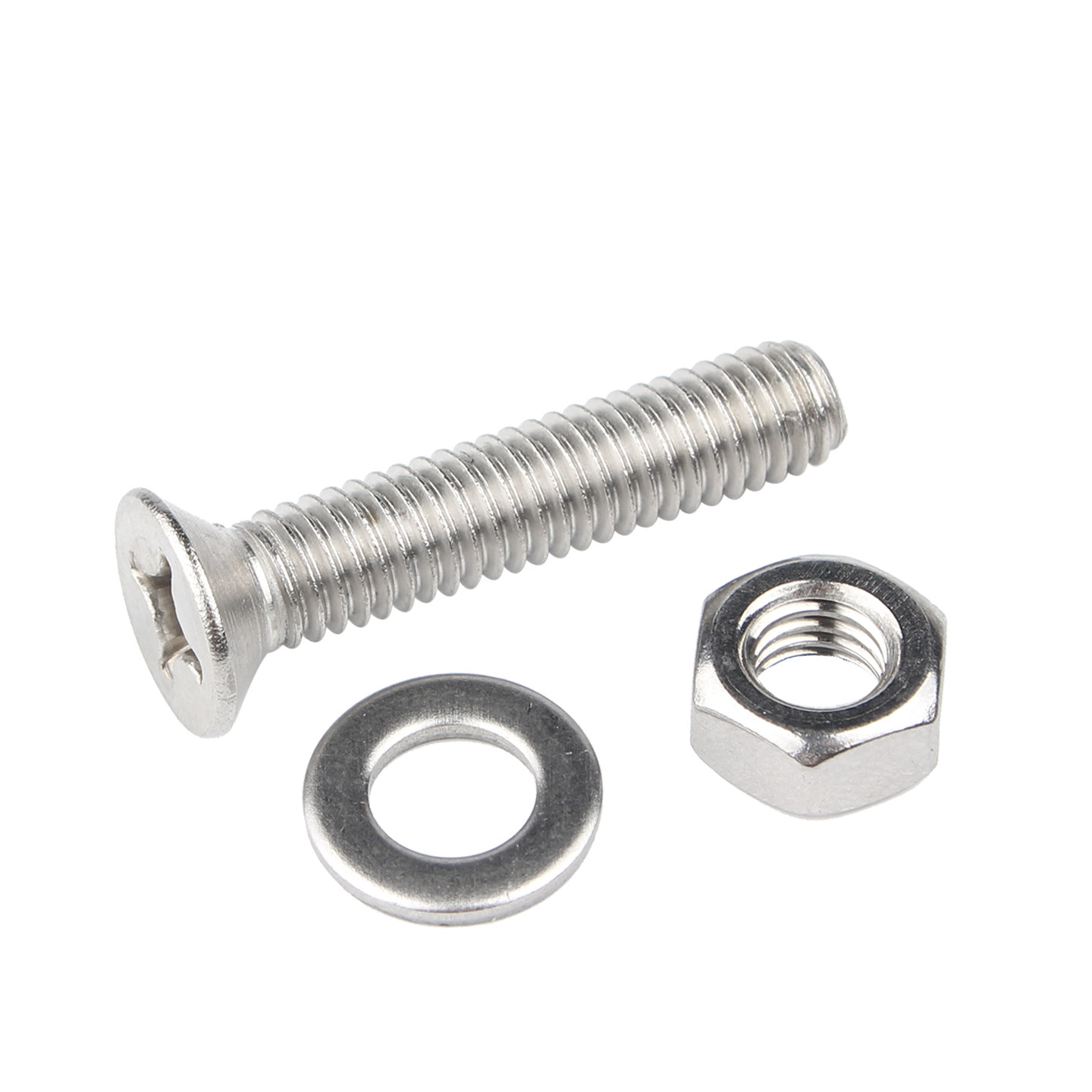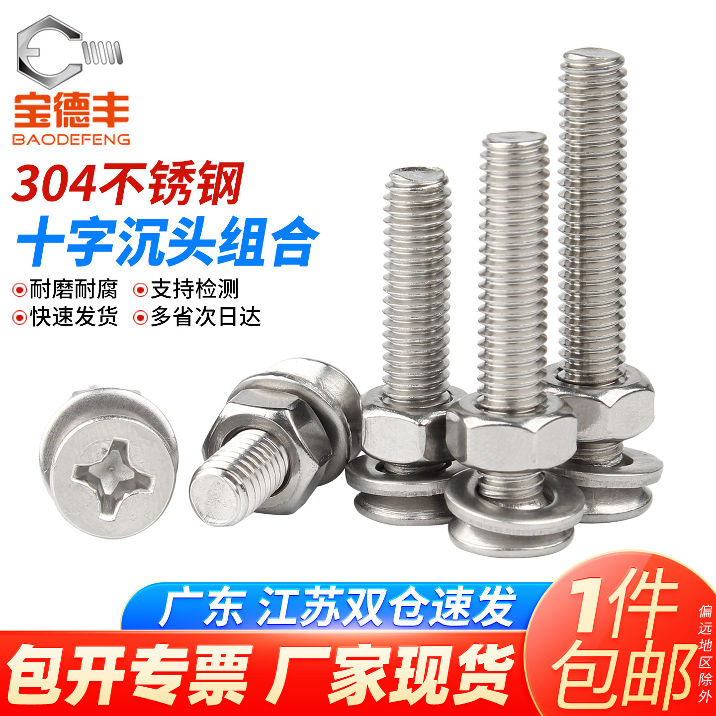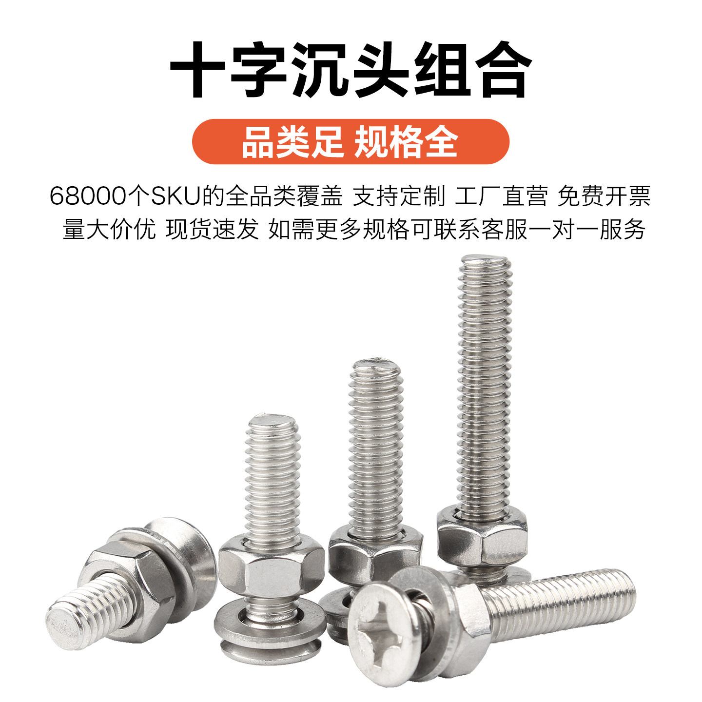 💥304不锈钢十字沉头螺丝螺母套装,平头带垫片弹垫组合,券后价3.5!品质与实惠并存💎