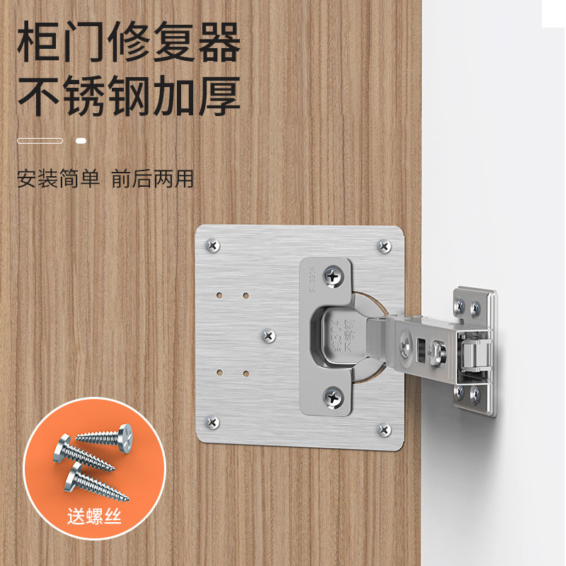 📚 柜门合页修复固定板衣柜门固定卡扣铁片橱柜门板铰链不锈钢修复片